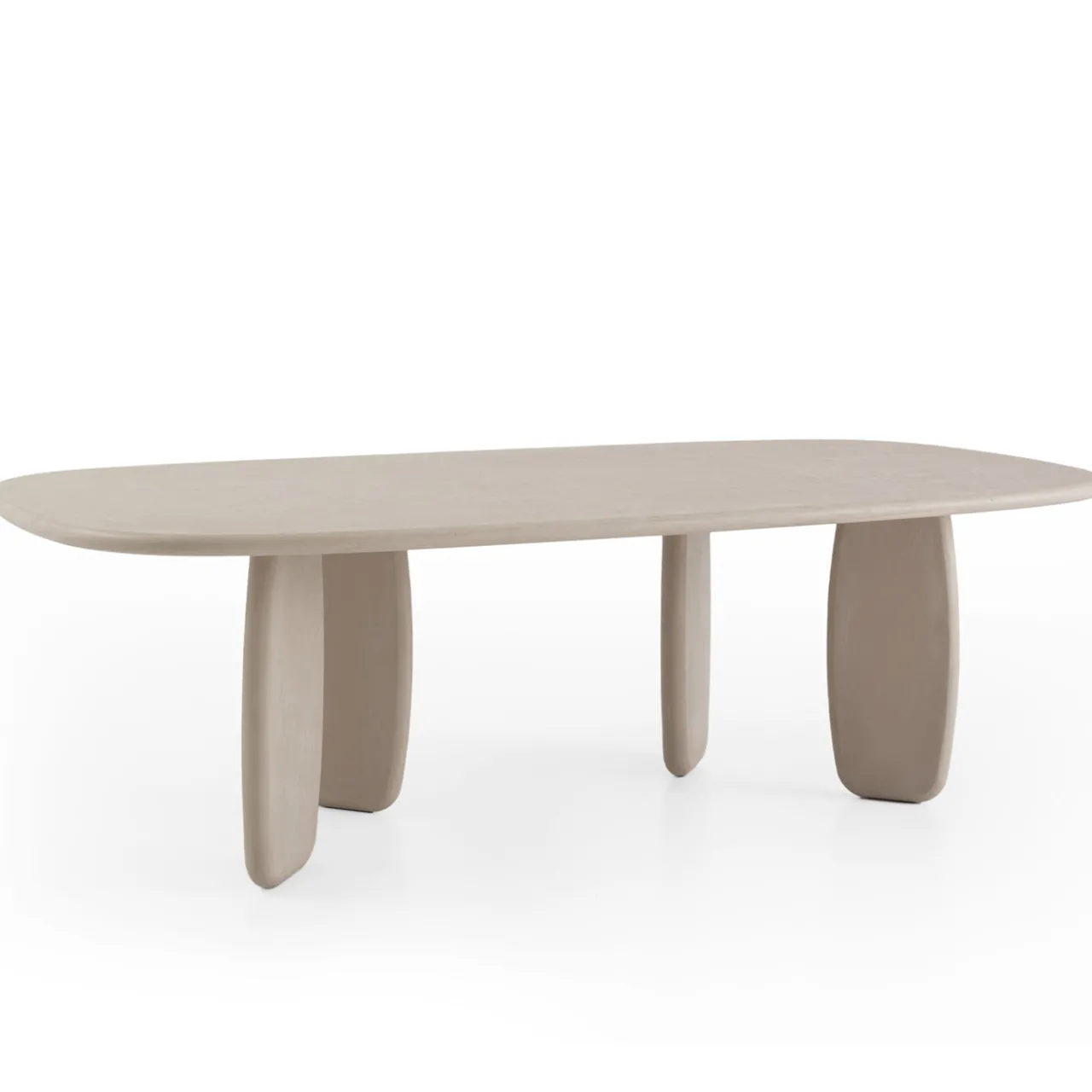 Il tavolo da pranzo Soap presenta un design scultoreo con quattro gambe uniche realizzate in MDF con una particolare finitura laccata marmorino unico malva. Il piano del tavolo di spessore medio, che misura 4 cm, ha un contorno liscio e arrotondato che aggiunge un’estetica morbida alla sua forma contemporanea. Questo tavolo da pranzo unisce una silhouette minimalista a una finitura testurizzata, creando una presenza sobria ma elegante adatta agli interni moderni.
