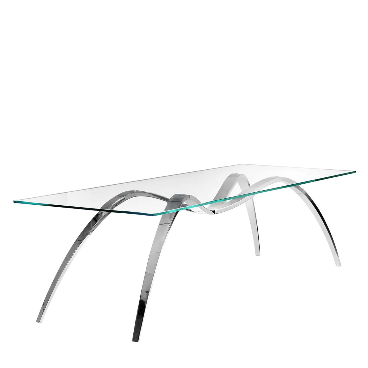 Il tavolo da pranzo Spider è realizzato in acciaio inossidabile lucidato a specchio e il piano del tavolo è in cristallo extrachiaro. Edizione limitata di 15 pezzi. Ogni tavolo è firmato a mano, numerato dagli artisti (inciso) e realizzato al 100% a mano in Italia. L’affascinante proiezione dell’ombra del ragno ha ispirato questo tavolo. Partendo da un’ombra, imprendibile e che svanisce, per ottenere la struttura zoomorfa. Le opere di Barberini & Gunnell sono regolarmente esposte in fiere d’arte internazionali.