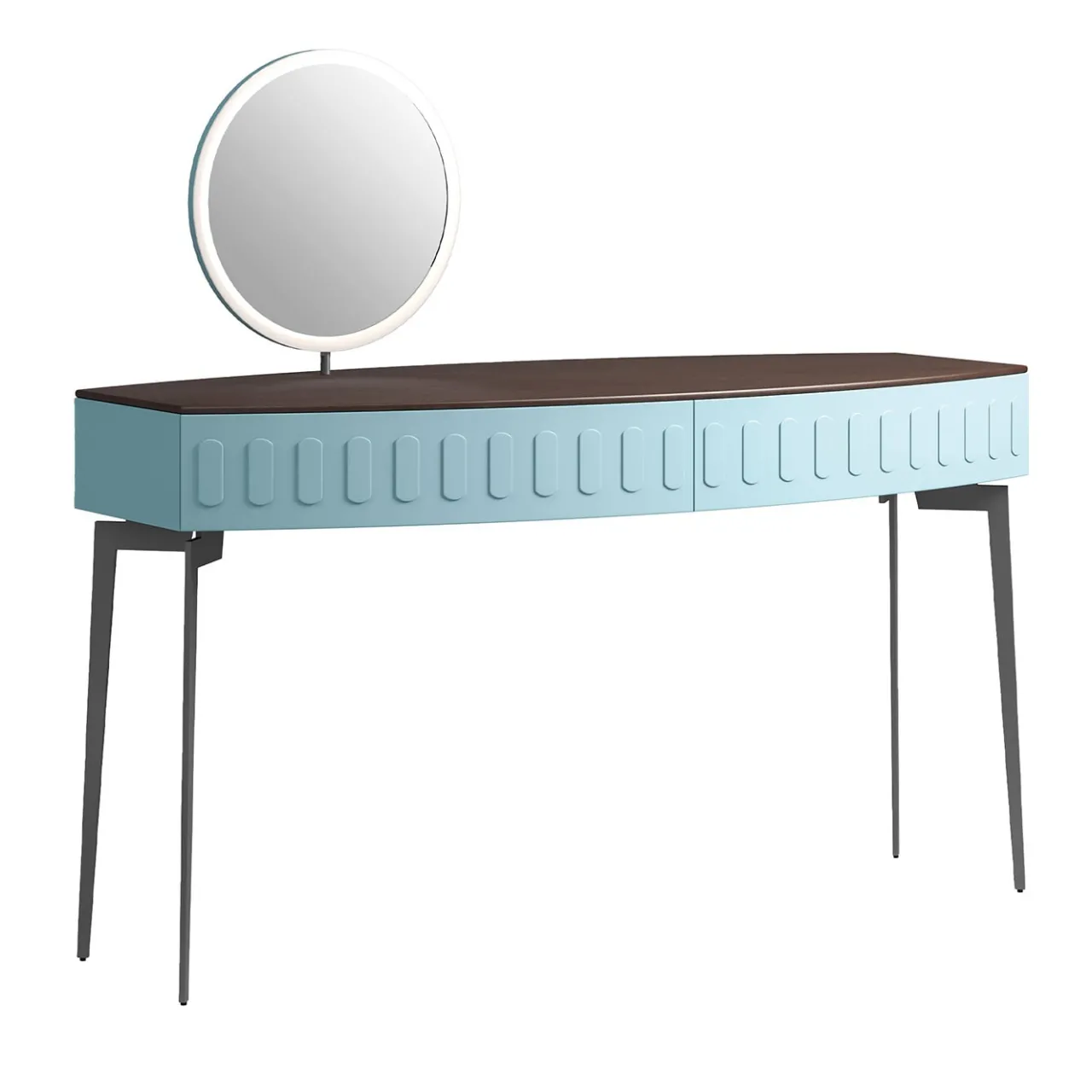 Questo splendido tavolino da toilette della collezione Ocean, dal design pulito e minimalista, è caratterizzato da una tavolozza rilassante di toni marroni e azzurri. Intramontabile e versatile, è realizzato in legno e vetro, disponibile anche con piano rivestito in pelle. Arricchito da un raffinato specchio. Per maggiori informazioni su materiali, finiture e possibili opzioni di personalizzazione, rivolgersi al Concierge.