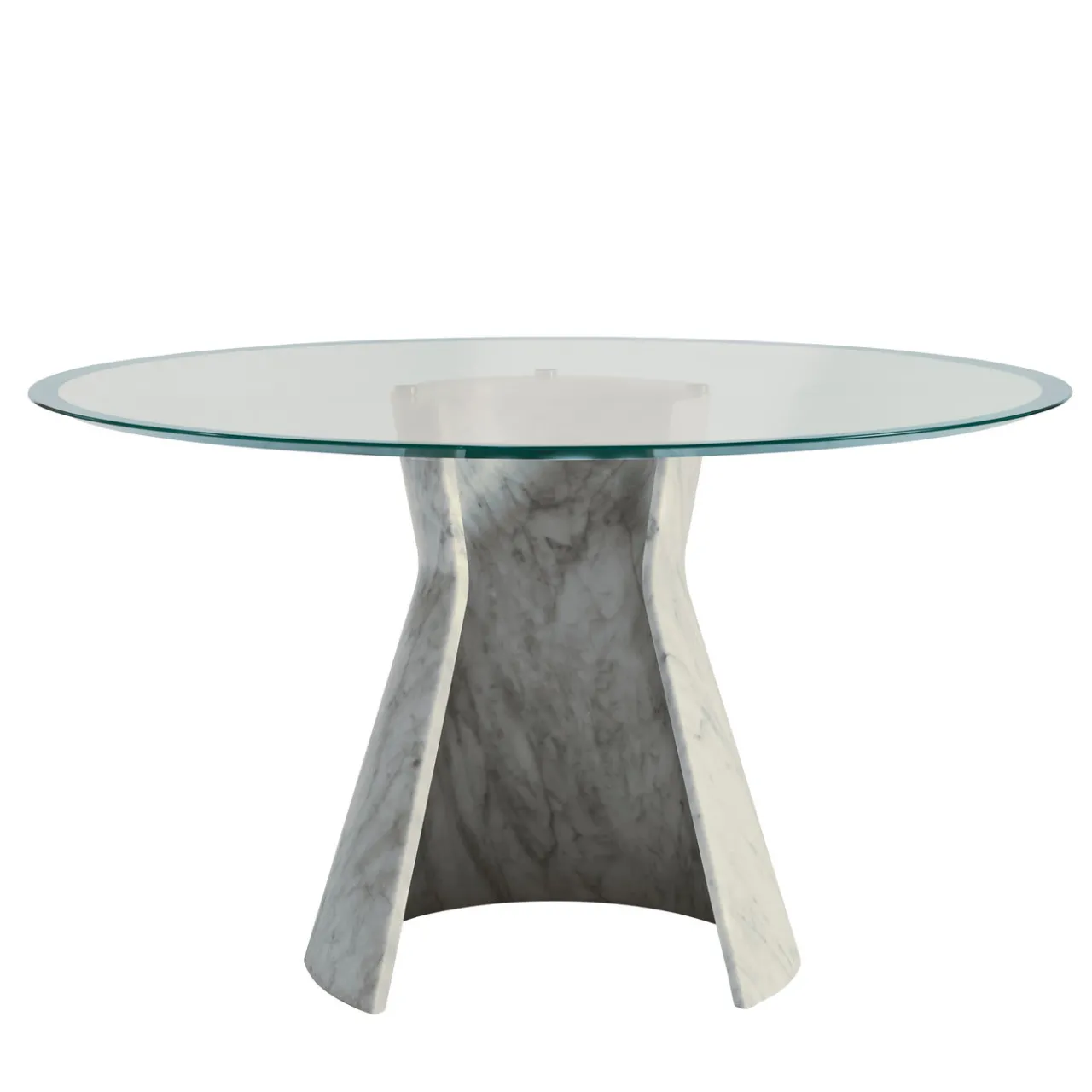 Disegnato da Gritti Rollo, questo splendido tavolo è un superbo esempio di alta artigianalità. Il suo piano rotondo in cristallo offre una visione senza ostacoli della sua base, realizzata con un unico pezzo di marmo di Carrara scolpito per creare il ricciolo che dà il nome al pezzo. Questa base, che conferisce un senso di solidità da un lato e di leggerezza dall’altro, è dinamica e sofisticata, un accento visivo di grande effetto in ogni ambiente. Il piano misura 130 cm e la base 65 cm. Sono disponibili anche altri tipi di marmo, per informazioni rivolgersi al Concierge.