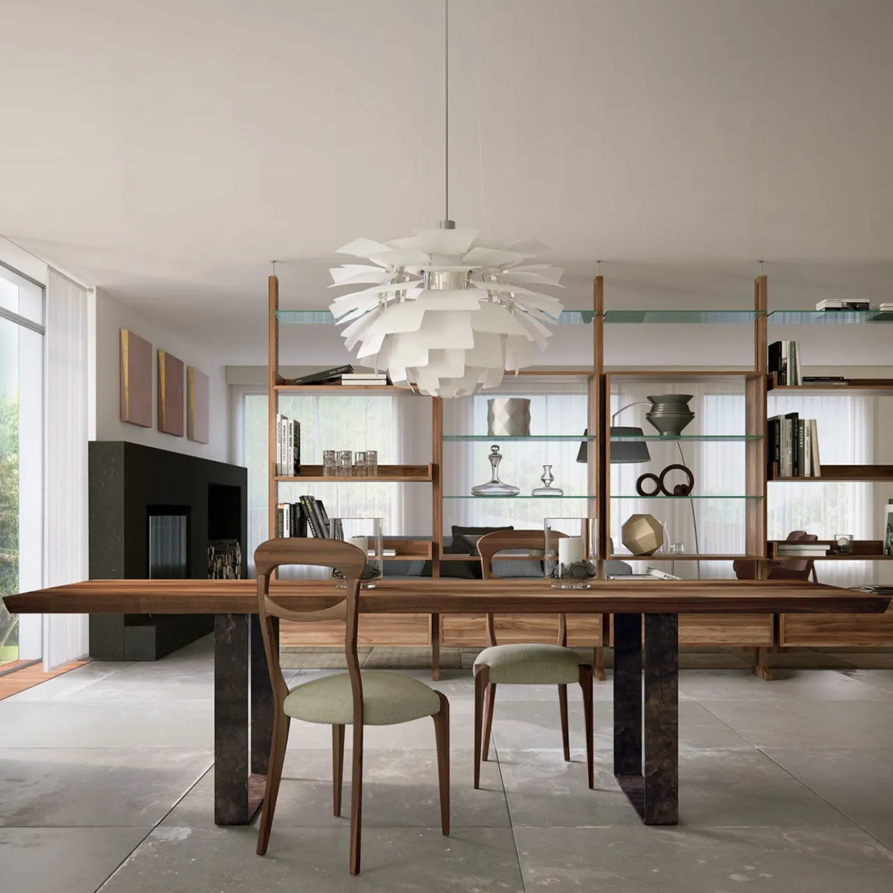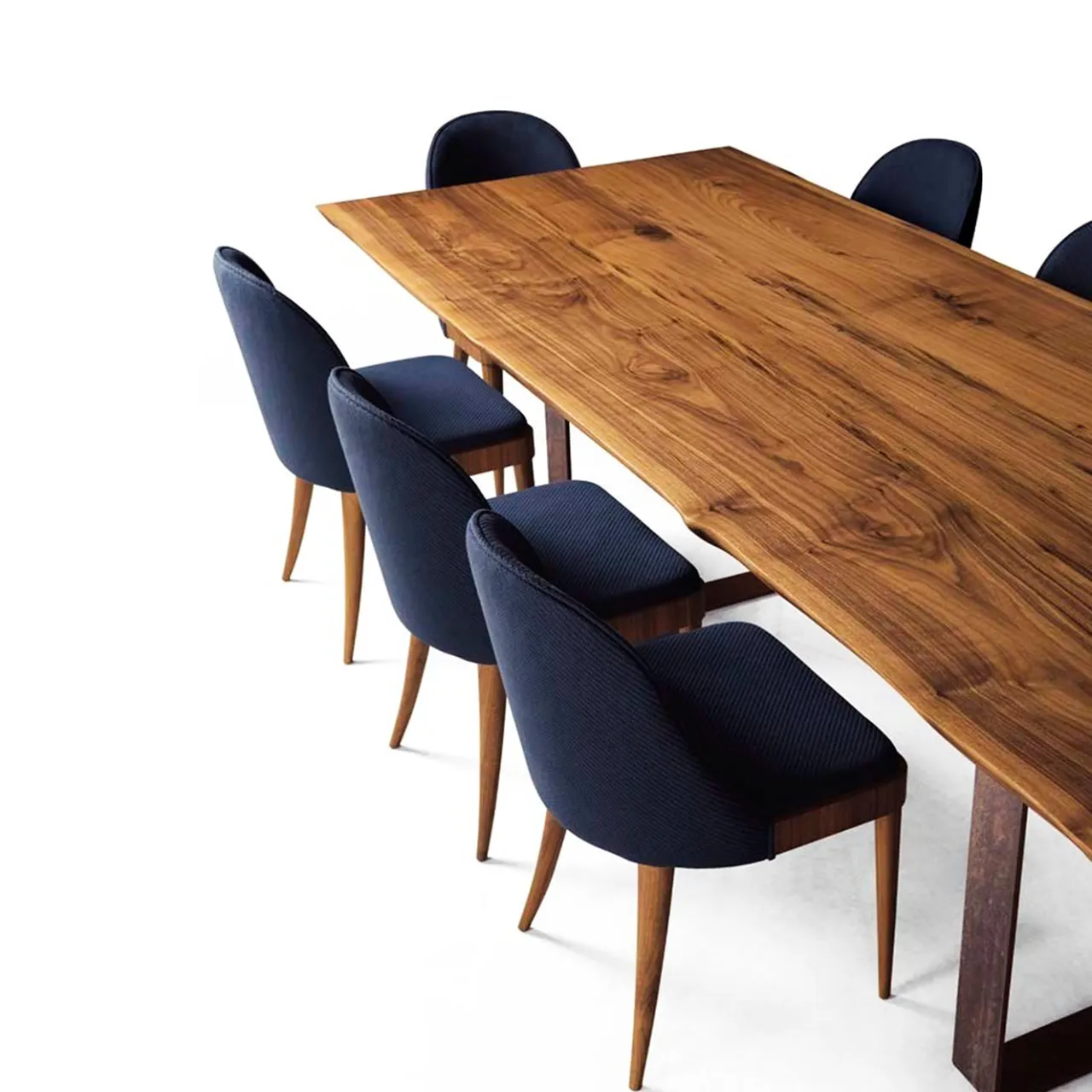 Un design raffinato, semplice e funzionale contraddistingue i tavoli in legno massiccio Misura. Questi tavoli modulari si concentrano sul piano, espressione della bellezza naturale del tipo di legno scelto. Realizzati a mano in Italia, sono il risultato di una sapiente lavorazione artigianale e della passione per i dettagli. I tavoli sono disponibili con gambe oblique o a slitta in diverse finiture personalizzabili. Nella prima variante, la struttura della base disegna linee inclinate e angoli acuti, mentre nella seconda le gambe assumono una forma lineare, con angoli arrotondati e un sapore contemporaneo.