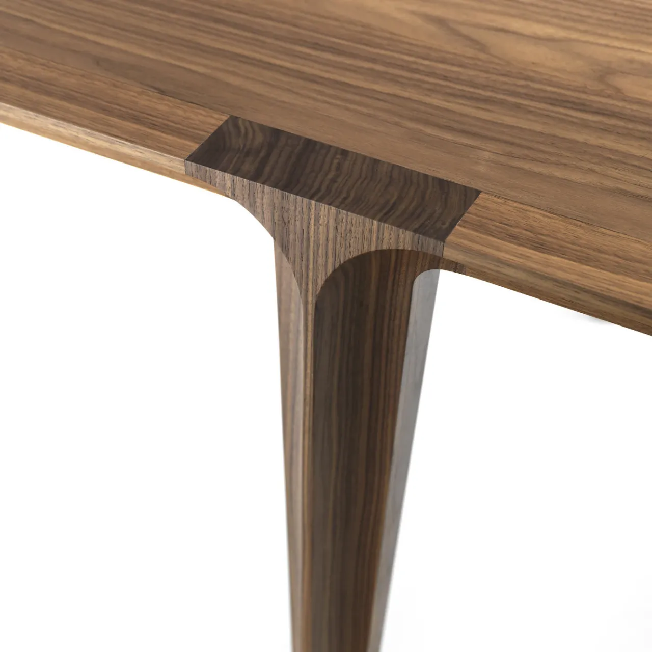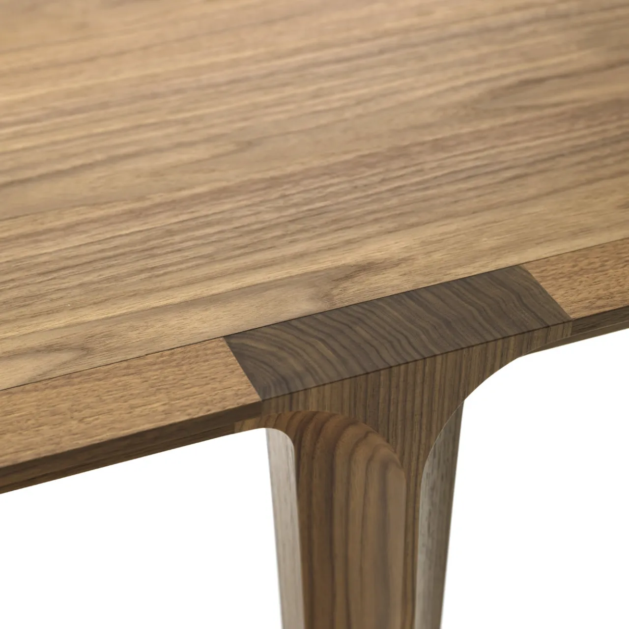 Questo elegante tavolo si ispira alla struttura architettonica delle città storiche europee. Le sue linee morbide evocano gli elementi ad arco arrotondato utilizzati negli edifici rinascimentali e nelle cattedrali. Grazie alla sua forma minimalista e affascinante, questo pezzo sarà un’ottima aggiunta a una sala da pranzo moderna. Sia la struttura che sostiene il piano semplice con gli angoli delicatamente arrotondati che il piano stesso sono in noce canaletto massiccio. Si prega di chiedere al concierge eventuali variazioni di prezzo per lo stesso tavolo in rovere durmast.