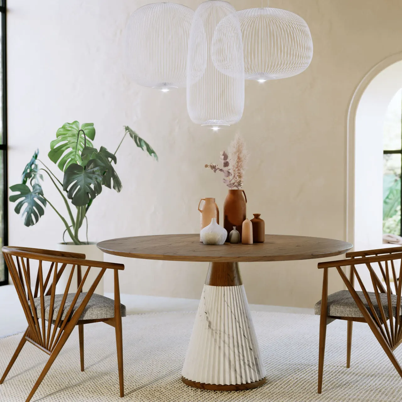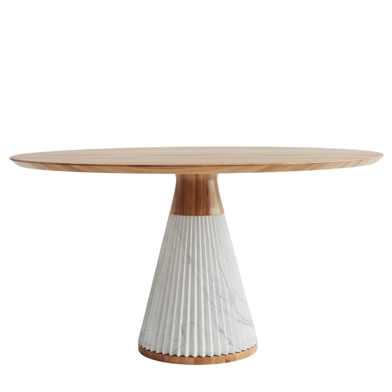 Design iconico di raffinatezza contemporanea, questo splendido tavolo rotondo di Libero Rutilo aggiungerà un accento raffinato ed elegante a un soggiorno o a una zona pranzo moderni. Realizzato a mano in legno di frassino, il piano rotondo poggia su una base conica in marmo bianco plissettato. Si prega di consultare il Concierge per ulteriori dettagli.
