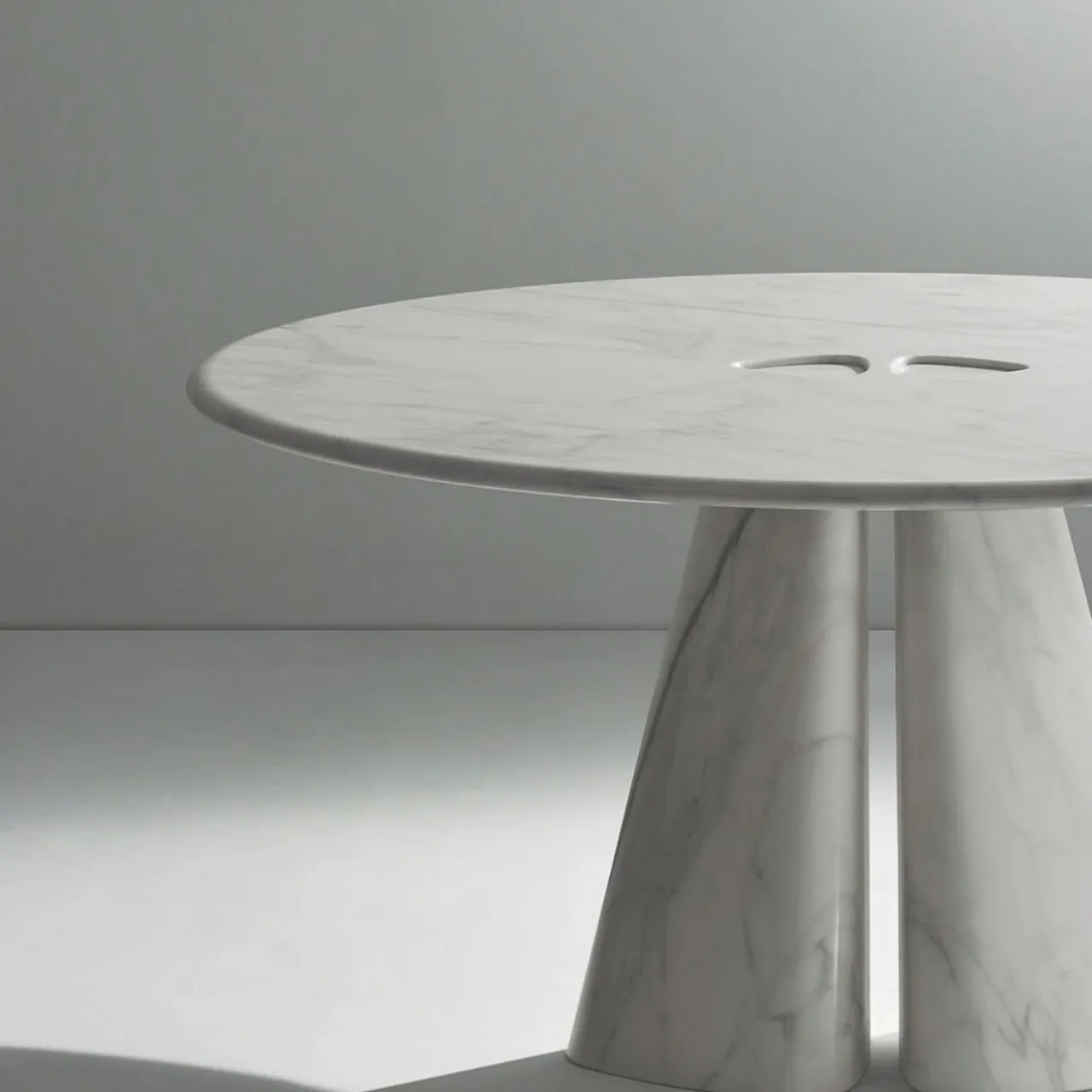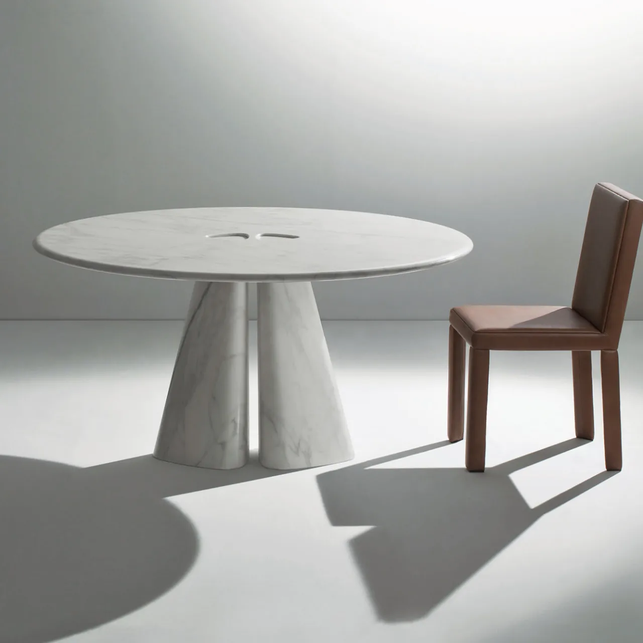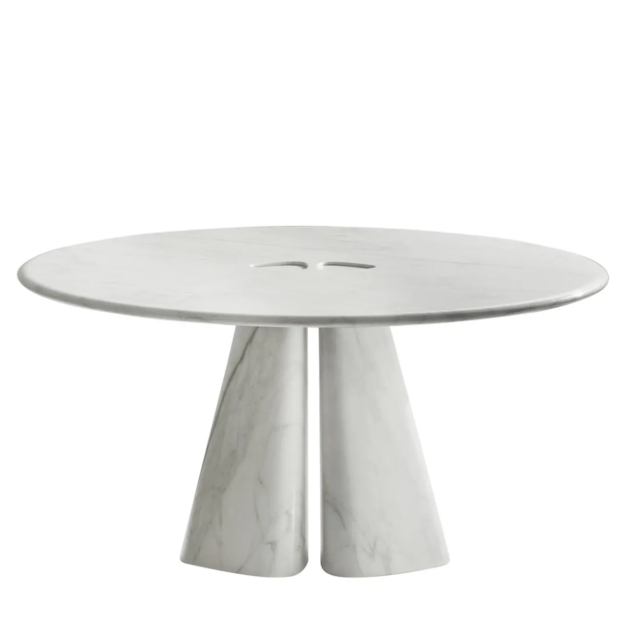 Questo tavolo unico, disegnato da Bartoli Design, è interamente realizzato in pregiato marmo bianco Calacatta ed è composto da una base a due elementi che si unisce al piano rotondo con un design minimalista ma sofisticato che combina il materiale più pregiato con un’attenta cura dei dettagli.
