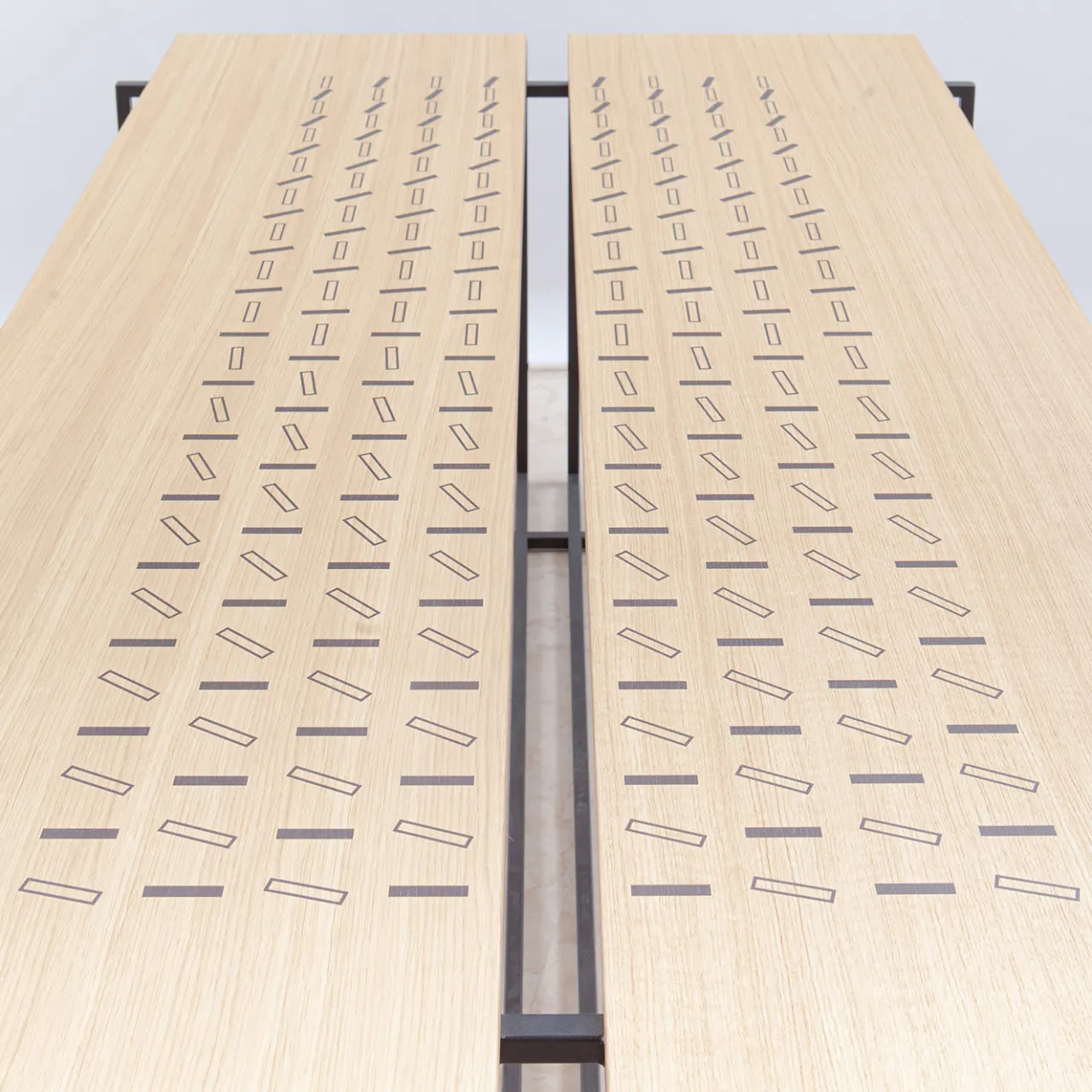 Parte della collezione ispirata alla mitologia greca e che prende il nome dal fiume degli Inferi, questo straordinario tavolo completerà qualsiasi sala da pranzo o sala conferenze. Il suo design sorprendente è caratterizzato da un’apertura longitudinale (per riporre i cavi del computer e i dispositivi di ricarica), che separa il piano in legno di quercia e la struttura metallica in due parti. Il piano, decorato con un motivo grafico ispirato a Marcello Morandini, presenta 248 elementi rotanti. Chiedete al Concierge altri motivi e opzioni di personalizzazione.