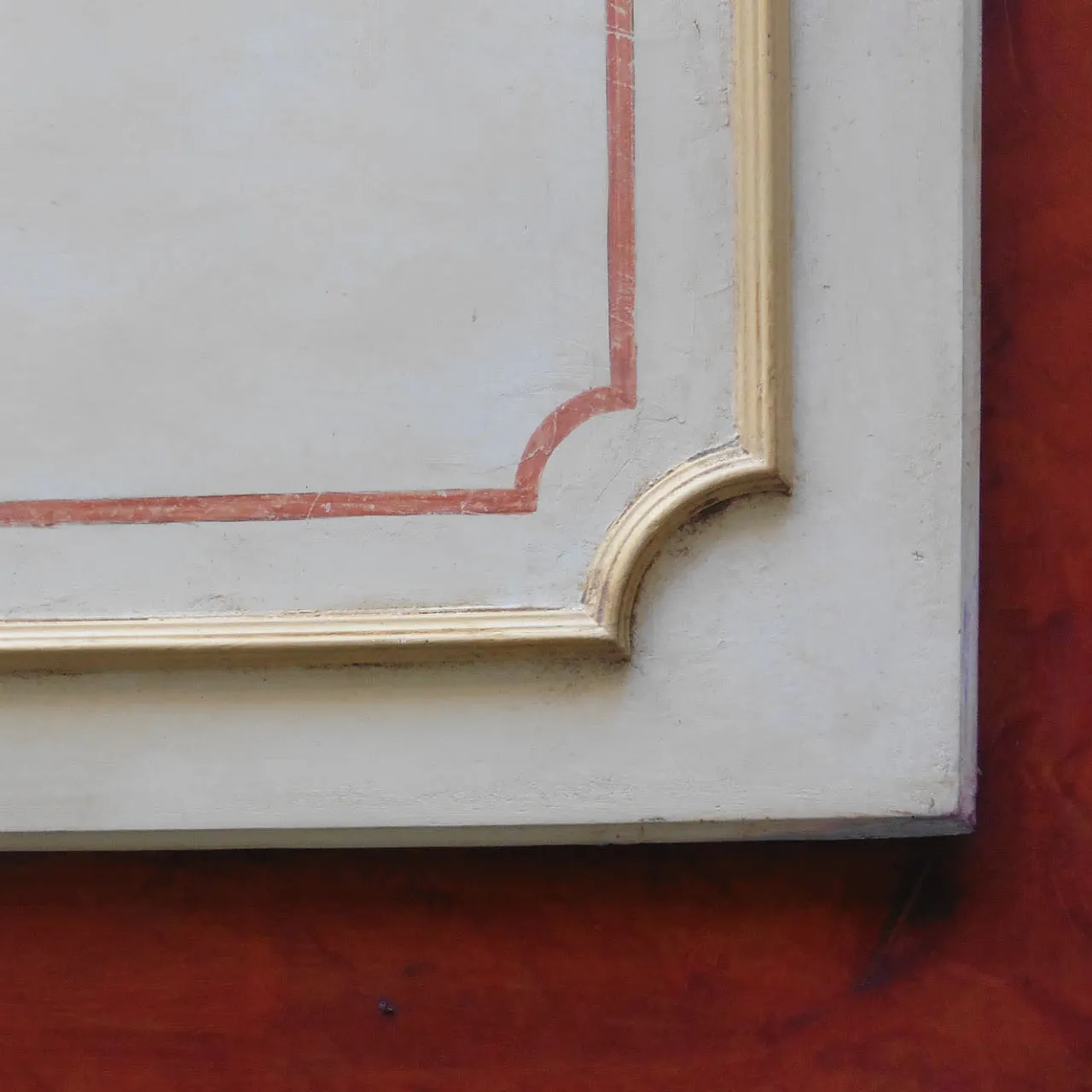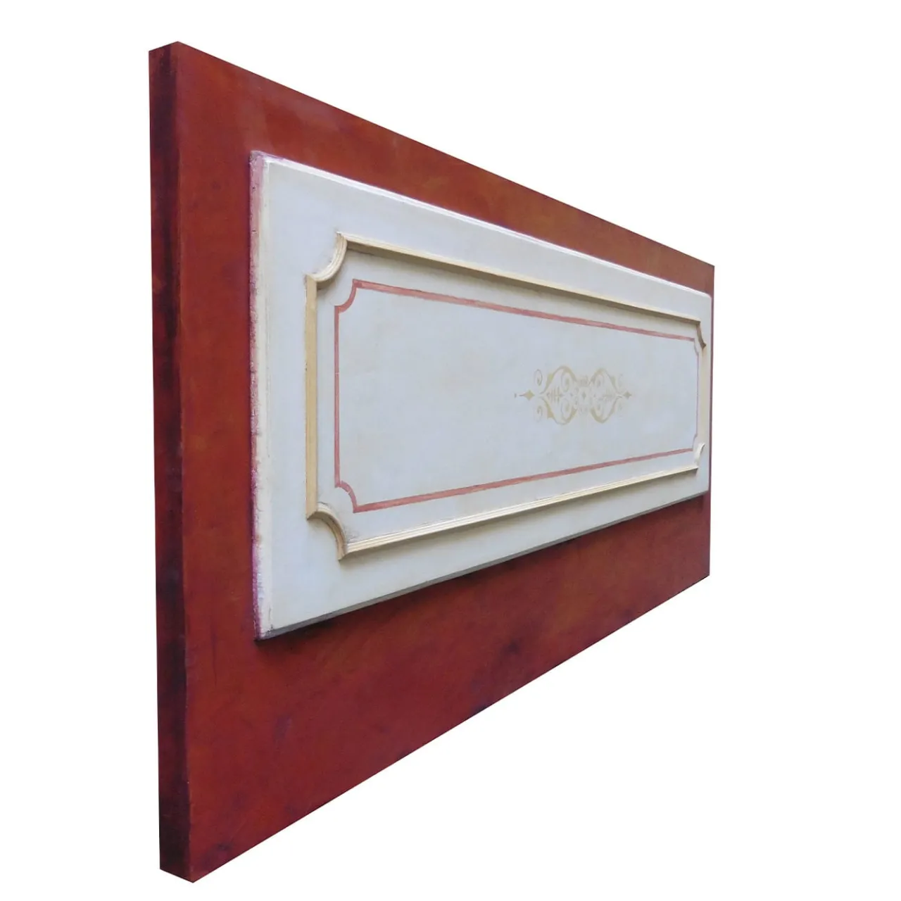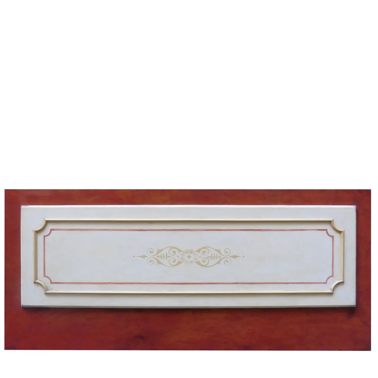 Questa raffinata testiera in legno presenta una struttura esterna in abete spatolato, impreziosita da effetti encausto e finiture in cera d’api. I pigmenti naturali creano delicati veli, applicati con una spatola e lucidati per una finitura liscia. Il pannello centrale in stile antico presenta dettagli dipinti a mano e una texture spugnata, incorniciata dai classici filetti di ossido giallo. L’intero pezzo è rifinito con cera d’api, combinando eleganza senza tempo e artigianalità.