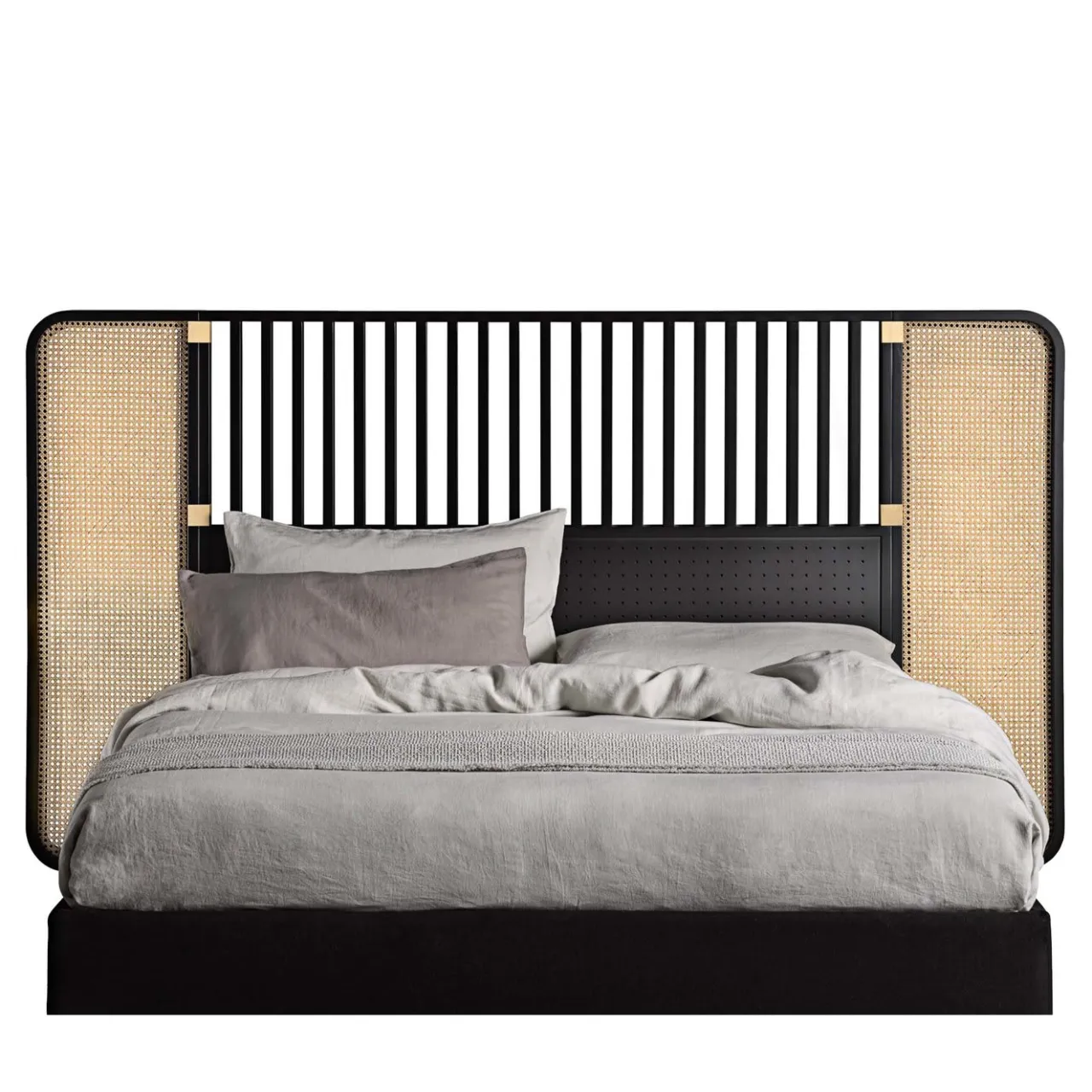 Omaggio a Otto Wagner e alla sua collezione Postsparkasse del 1906, la testiera Ottow disegnata da storagemilano è un’intrigante rivisitazione dello stile classico. Caratterizzata da una struttura in faggio curvato, disponibile nelle finiture laccata nera o tinta naturale, la testiera è incorniciata da inserti in canna intrecciata, nella versione nera con dettagli in ottone e nella versione naturale in rame.