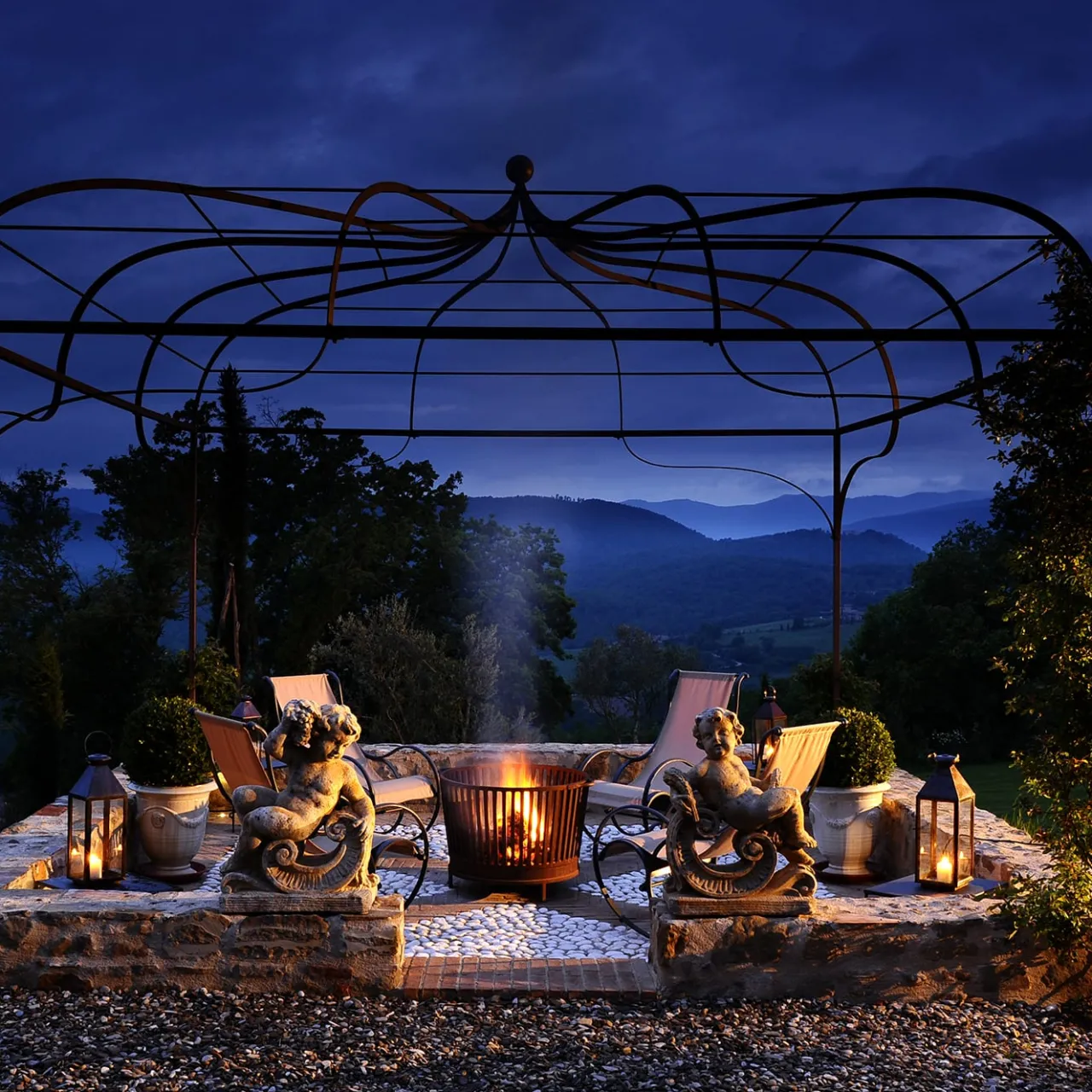 Questa griglia rotonda è stata progettata pensando alle notti fredde e stellate trascorse con gli amici riuniti intorno al camino. Da collocare al centro di una terrazza o di un patio per fornire calore e illuminazione, presenta una base con piedi e un cesto con maniglie, tutti realizzati in acciaio per garantire prestazioni impeccabili di durata e resistenza. Questo pezzo è attualmente in mostra e immediatamente disponibile presso la Galleria Artemest di New York.