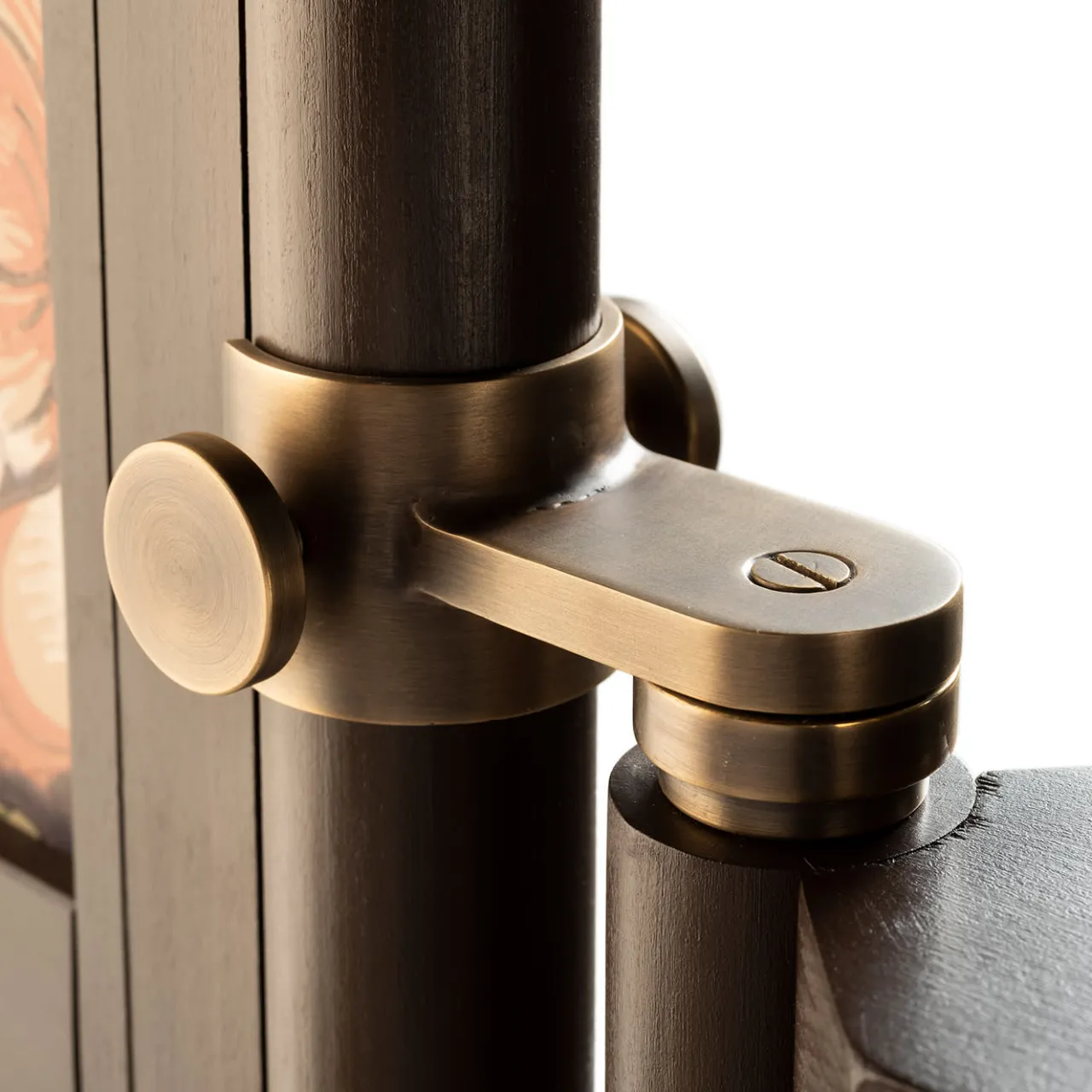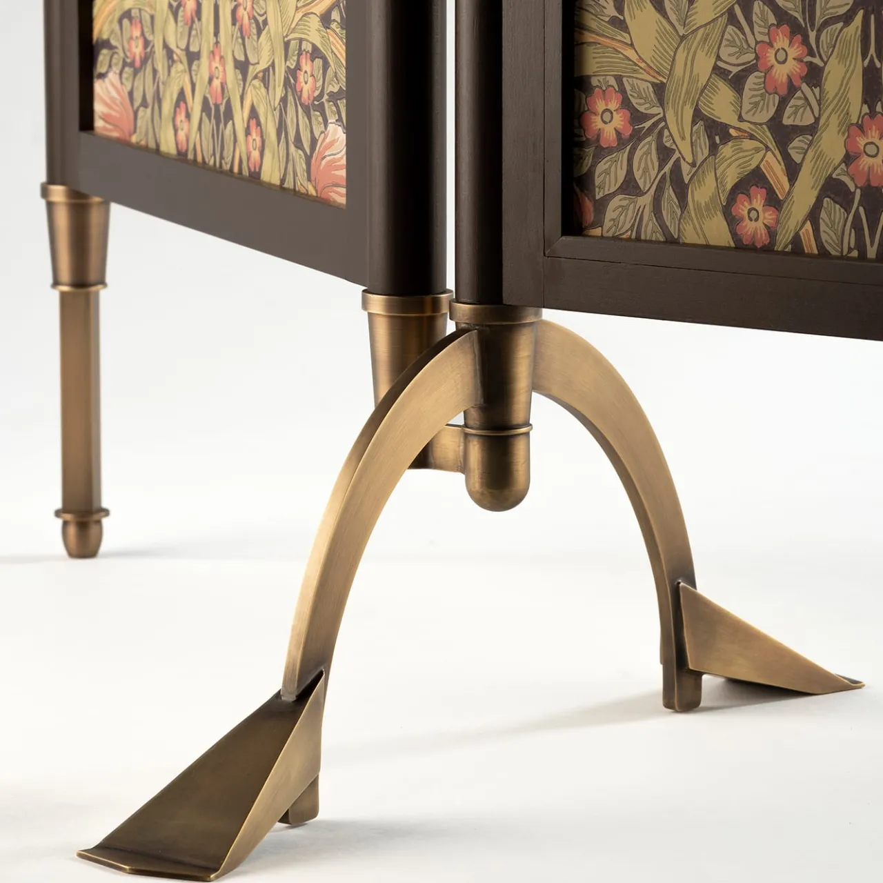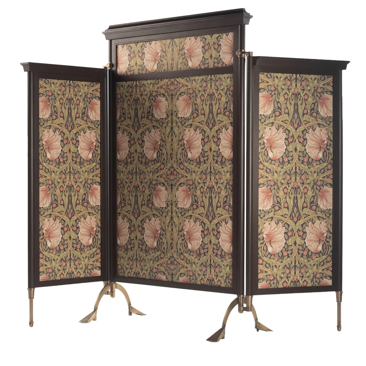 Elegante complemento d’ispirazione vintage di alcune camere dell’Hotel Castello di Reschio, questo paravento è stato concepito pensando al piacere di fare un bagno caldo ammirando il suo intricato motivo a fiori e foglie che trasmette un’atmosfera romantica. La cornice in legno con finitura scura, i piedini in ottone e le cerniere B.B. ne garantiscono la durata nel tempo.