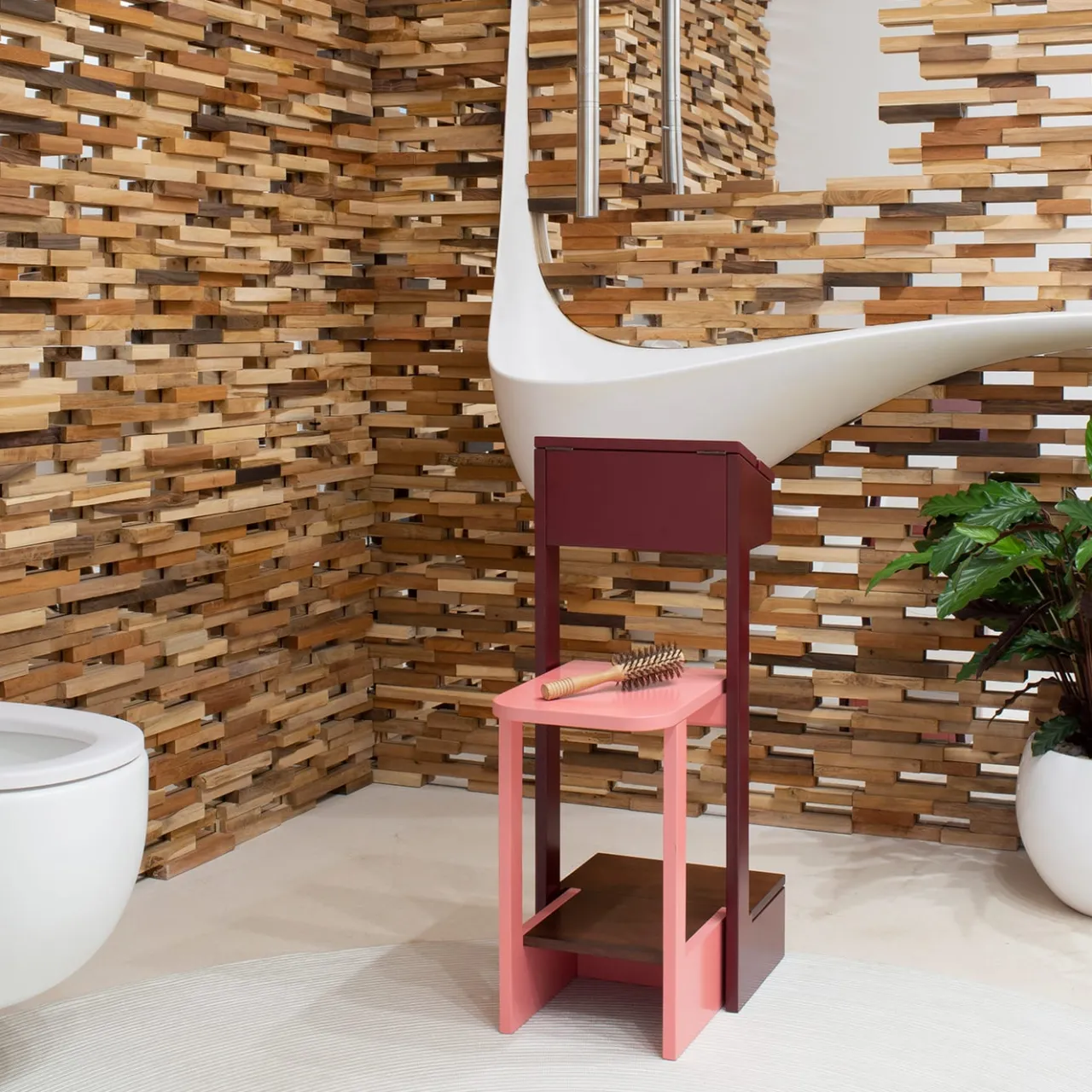 Ispirato al “trabattello”, questo versatile mobile sarà utile in qualsiasi zona della casa. Con la sua raffinata componente in legno 2 in 1, questo pezzo innovativo è il massimo dell’arredamento multifunzionale: usato come appoggio o poggiapiedi, comodino o tavolino, Trab C sarà una soluzione chic e notevolmente distintiva per spazi minimal o contemporanei. Designer: Standa.