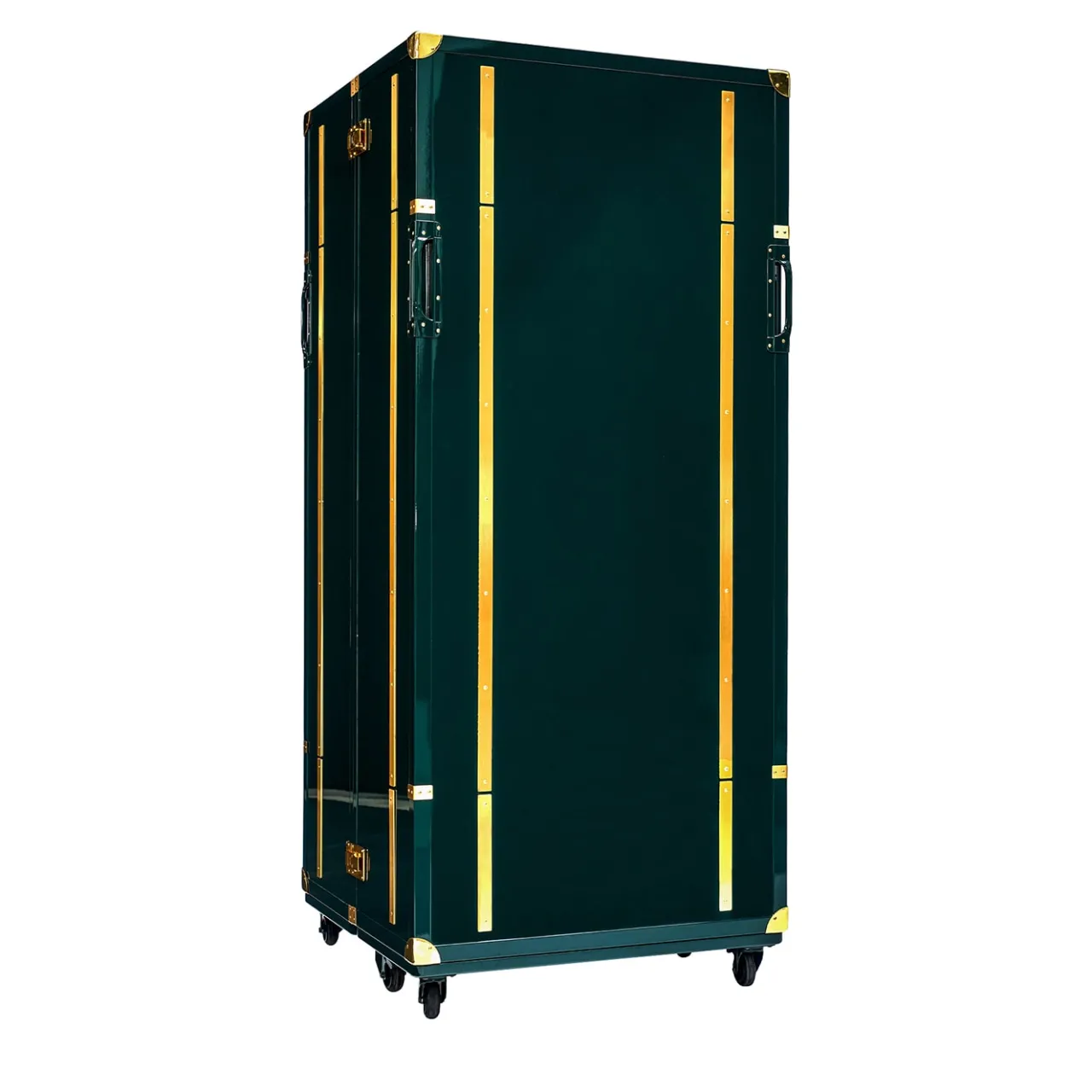 L’intelligente trunk da ufficio New York funge da spazio di lavoro mobile di lusso, progettato per ambienti abitativi compatti come le suite degli hotel. Presenta una finitura lucida in lacca con inserti in ottone opaco, bordi e maniglie in lacca tono su tono, insieme a serrature e paraspigoli in ottone lucidato. L’interno è rivestito in legno di teak con portafogli in ottone opaco e retroilluminazione a LED su entrambi i lati. È incluso un pouf abbinato con finitura lucida in lacca, dettagli in ottone, un cuscino rivestito in velluto e un interno foderato in tessuto.