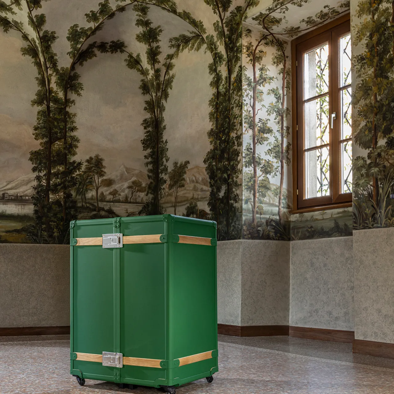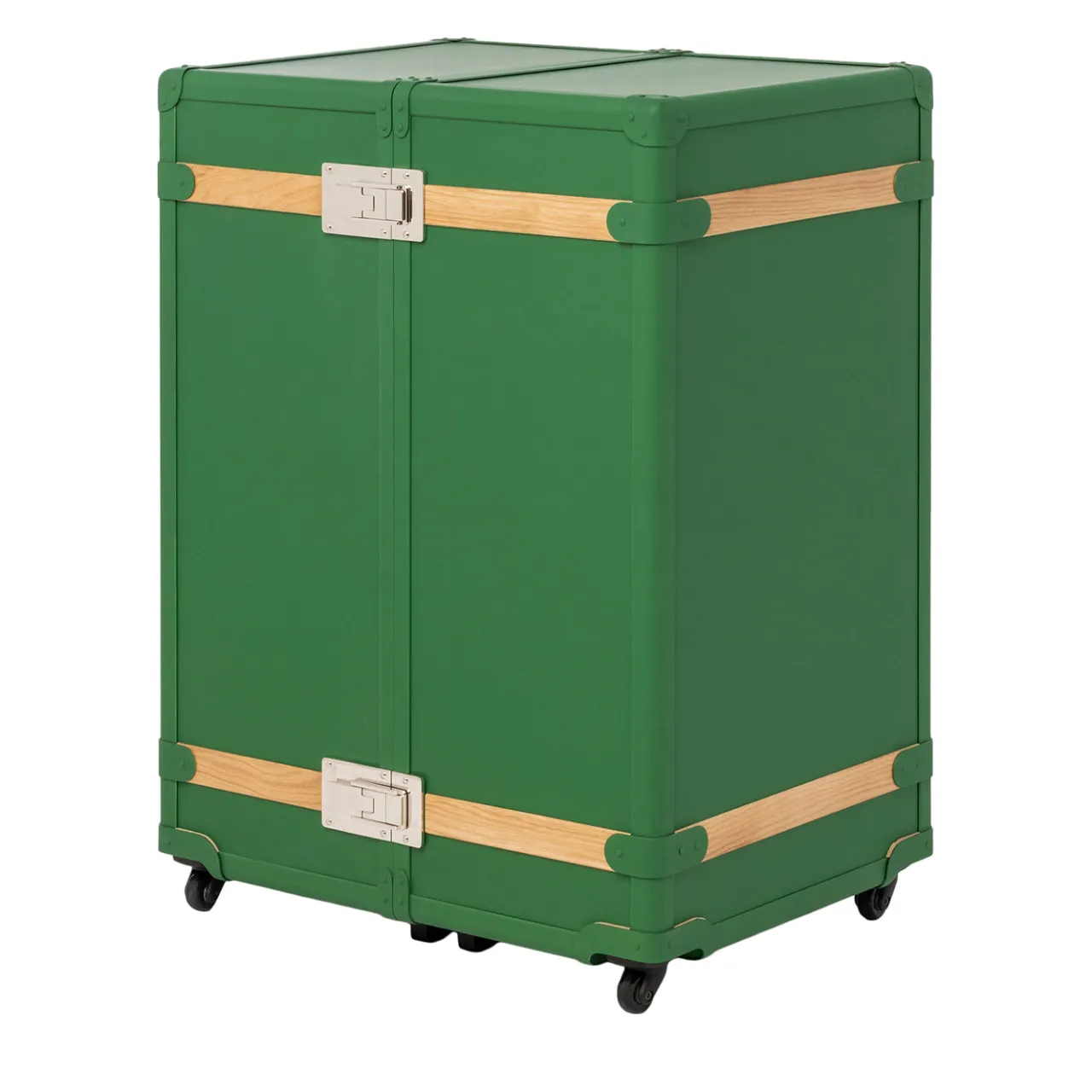 Il baule guardaroba Saint-Tropez presenta un’esterno laccato con una finitura in gomma unica accentuata da inserti in rovere e dettagli in ottone cromato. Progettato per organizzare una varietà di effetti personali, offre un interno con scomparti, cassetti in rovere e maniglie in pelle. La sua dimensione media e la base con ruote ne migliorano la portabilità, rendendolo una soluzione pratica e stilosa per viaggi o uso domestico.
