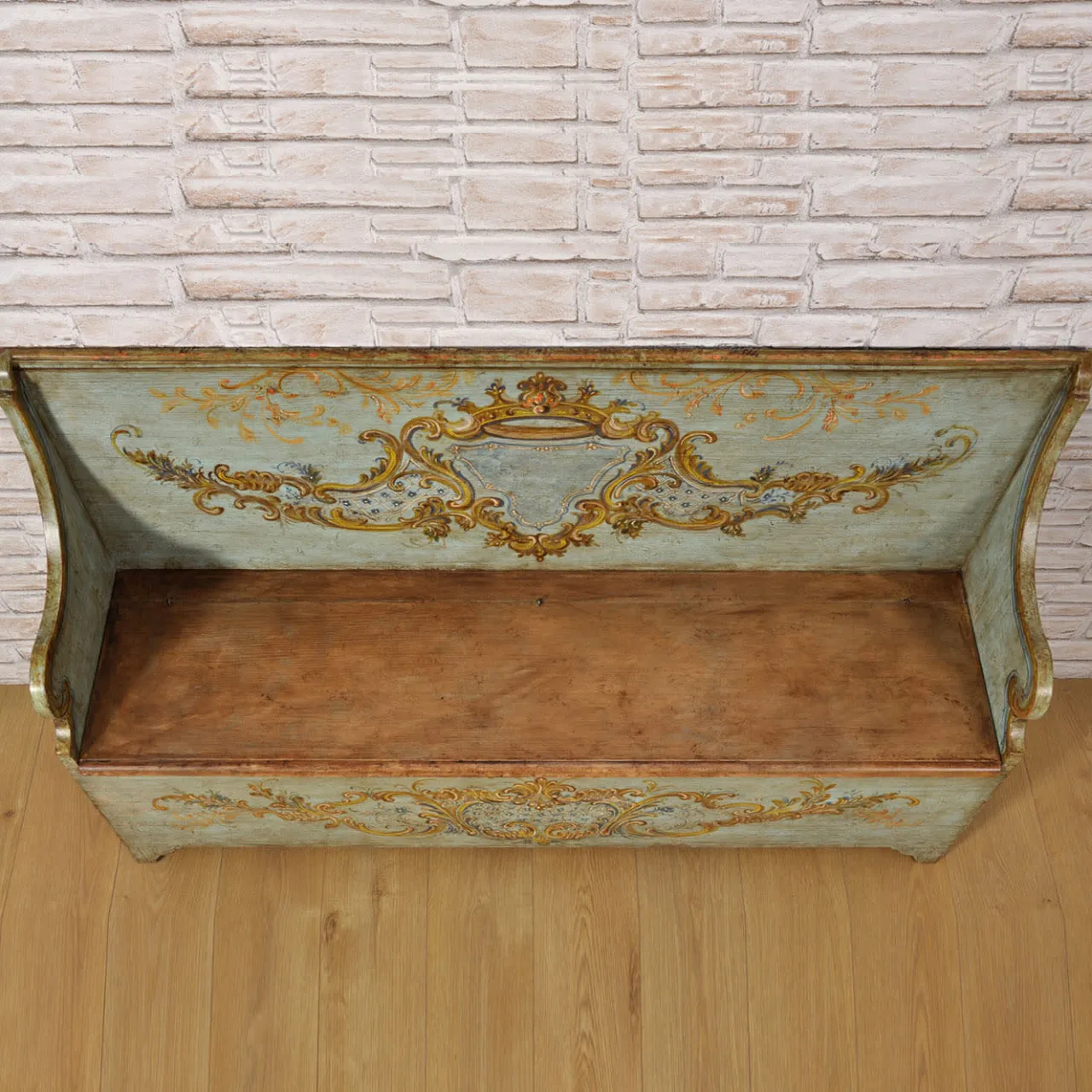 Un’aggiunta perfetta a interni classici o contemporanei per ottenere dichiarazioni opposte e sofisticate, questa panchina storage è un prezioso pezzo di falegnameria che riproduce fedelmente un design del XVIII secolo veneziano. Arricchita con una patina sfumata ottenuta dalla polvere del terreno, le decorazioni dipinte a mano esprimono inconfondibilmente il fascino lussuoso e irripetibile del pezzo. Disponibile anche in altre dimensioni; contattare il Concierge per ulteriori dettagli.