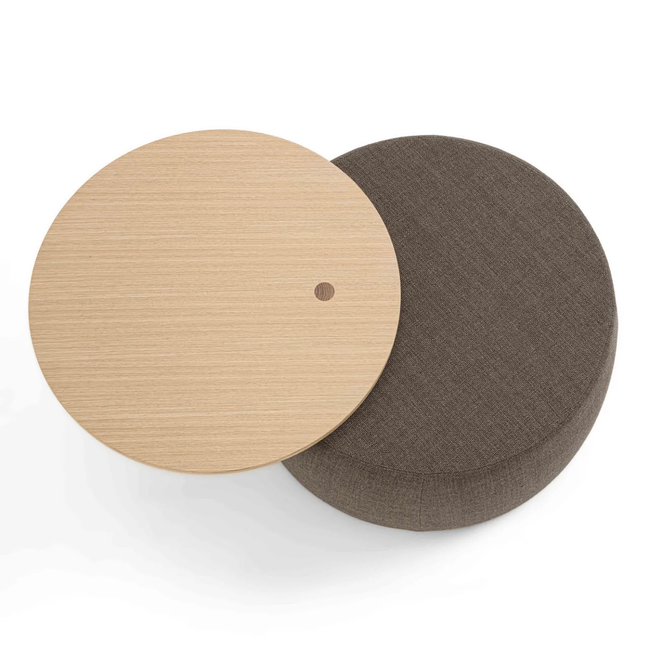 L’ottoman e tavolino rotondo marrone Verto offre un utilizzo multifunzionale con il suo volume imbottito e rivestito in tessuto e il piano in rovere integrato. Il meccanismo rotante rivela un comodo sedile sotto la superficie in legno, permettendo di usarlo sia come posto a sedere che come tavolino da caffè. Disponibile in diverse dimensioni e finiture, contattare il Concierge per ulteriori informazioni.