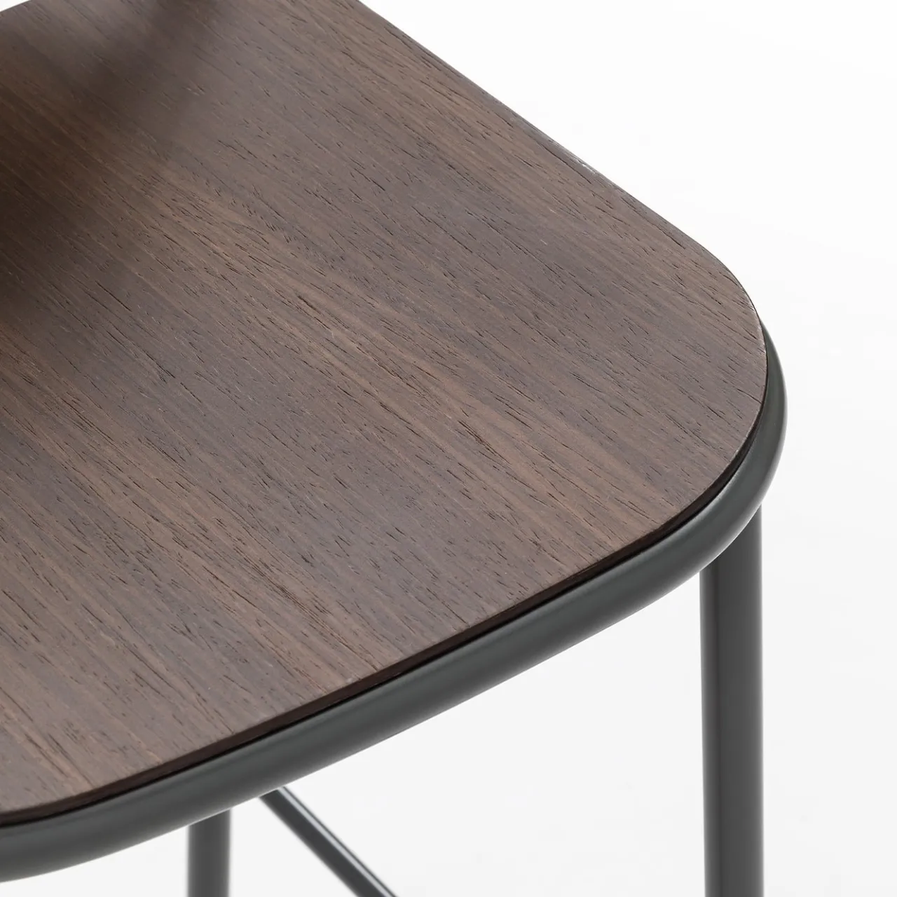 Metallo e rovere si fondono nel design elegante di questo sgabello da bar di Studio Gabbertas. Disponibile anche nella versione bassa, presenta una seduta e uno schienale alti 75 cm, entrambi in rovere termotrattato, elementi che aggiungono un tocco di organicità a una struttura metallica (RAL 7043) cilindrica di ispirazione minimalista. Sono disponibili anche versioni in frassino, rovere chiaro o anilina nera, da richiedere al Concierge.