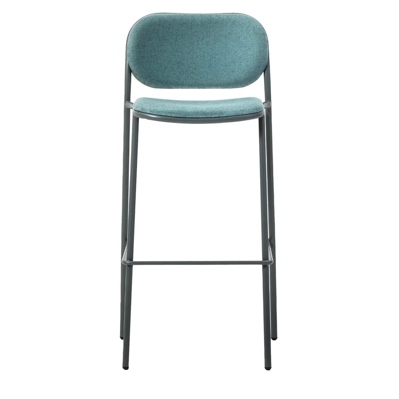 Sorseggiare un buon drink godendo del piacere di una seduta confortevole è possibile con questo notevole sgabello da bar di Studio Gabbertas. Snella ed essenziale, la struttura cilindrica in metallo rifinito in grigio (RAL 7042) ha lo schienale aperto e la seduta rivestita in un tessuto di colore verde (cat. E Blazer Latymer CU33) per un tocco di comfort in più. La seduta è alta 75 cm e nel catalogo Artemest è disponibile anche una versione più bassa per adattarsi a qualsiasi esigenza di arredamento.