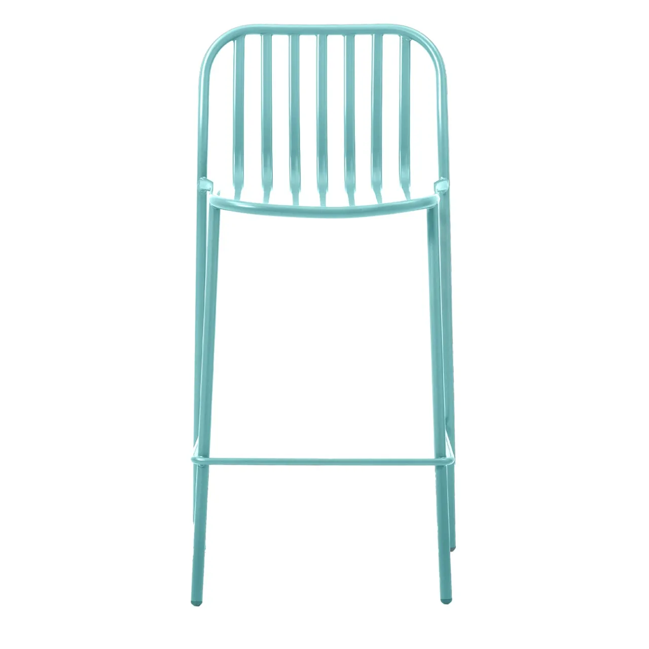 Proposto in una brillante finitura turchese (Ral 6034) che richiama le sognanti acque tropicali, la solida struttura cilindrica in metallo di questo sgabello da bar garantisce leggerezza e freschezza. Lo schienale è composto da barre multiple, i cui contorni arrotondati ammorbidiscono una silhouette generale altrimenti troppo rigorosa. Per informazioni sulle opzioni di personalizzazione, sulle versioni per esterni/interni e sul cuscino di seduta opzionale, rivolgersi al Concierge.