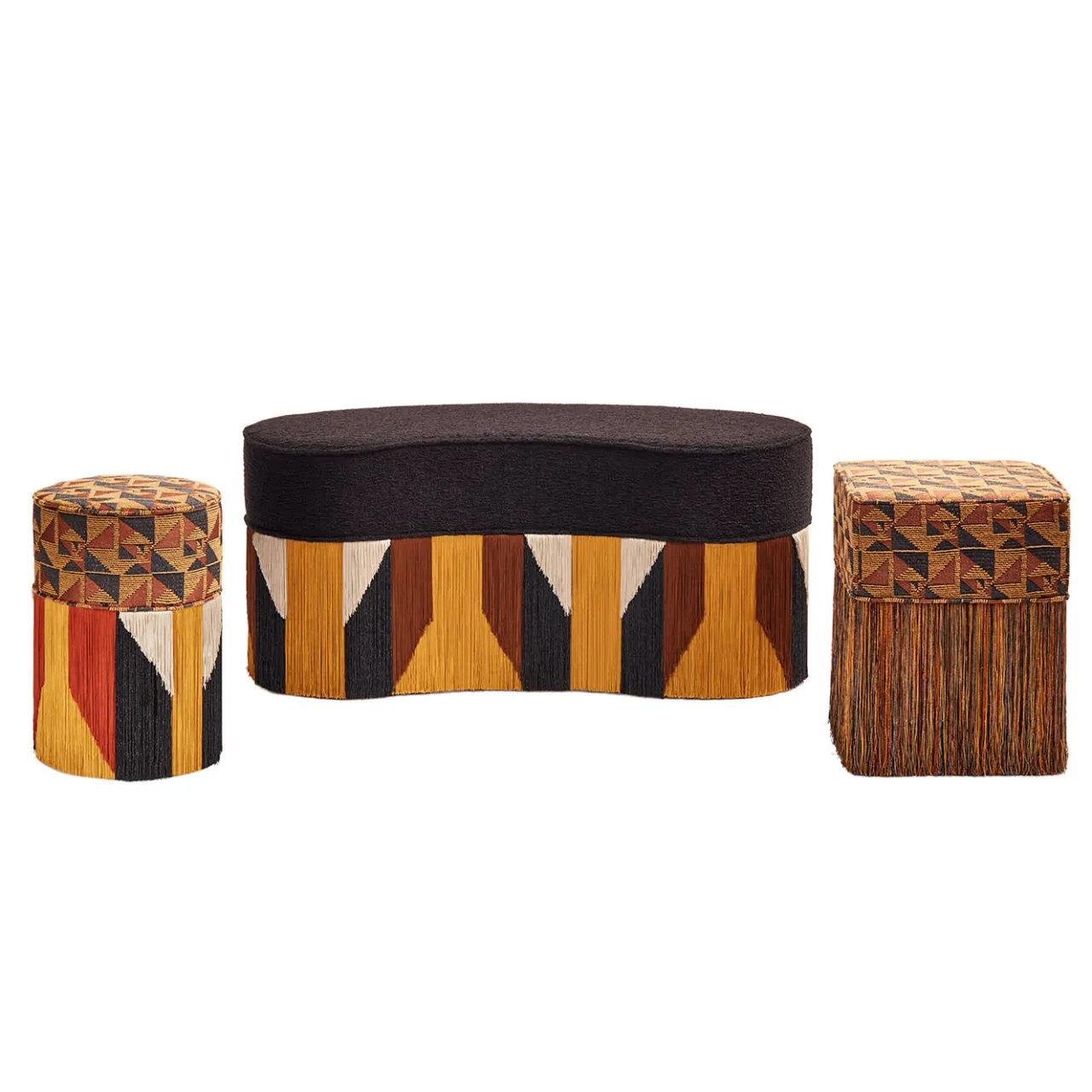 Con la sua allure tribale, questo caratteristico pouf Eli della versatile Lorenza Bozzoli creerà un effetto di grande impatto in una zona giorno contemporanea. Interamente realizzato a mano e rivestito in un tessuto di ispirazione nativa, è impreziosito da un vivace disegno sulla gonna con frange in viscosa e lurex. Ogni pezzo è numerato e firmato dall’artista e la personalizzazione è disponibile su richiesta; per informazioni, contattare il Concierge.