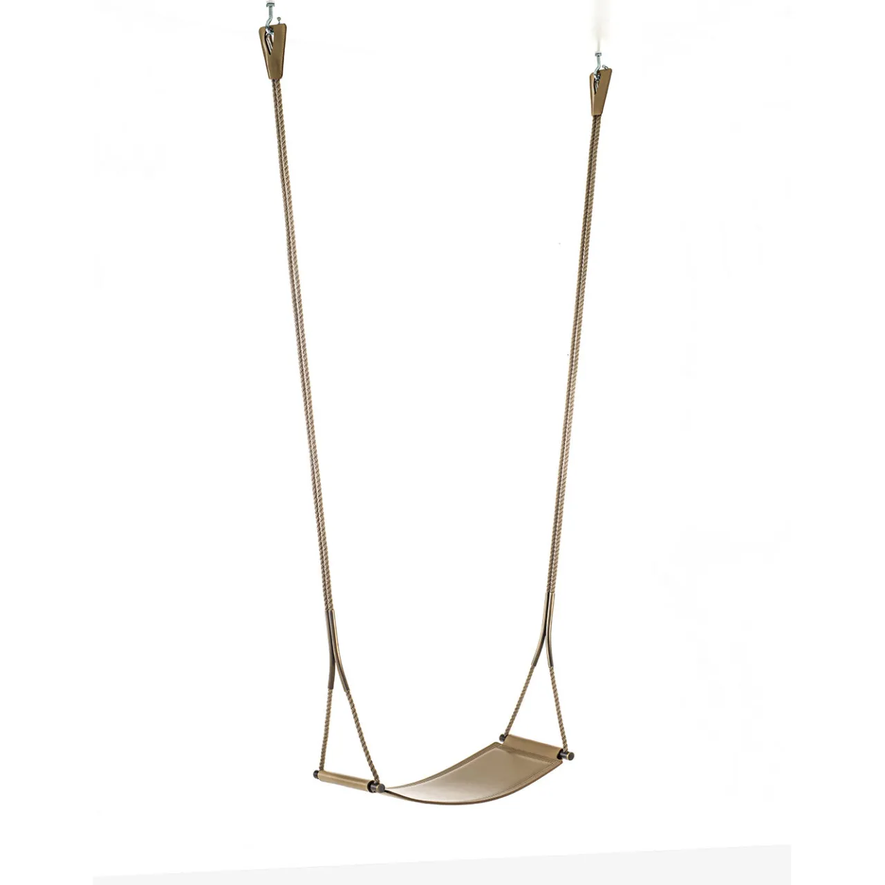 Altalena da interni con seduta in pelle, disponibile in diversi colori. Componenti metallici in ottone bronzato. La corda è abbinata alla finitura dei componenti metallici; ha un’eccellente resistenza alla rottura e un basso allungamento. L’altezza della corda è standard, ma può essere tagliata e regolata per adattarla al vostro spazio. Le cuciture della pelle sono realizzate tono su tono. Tutti i componenti sono disponibili in altri colori. Per maggiori informazioni, contattare il concierge.
