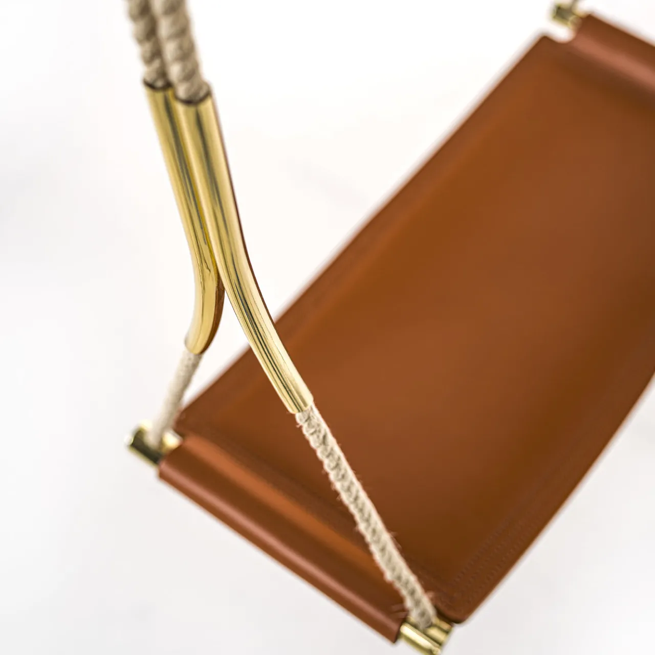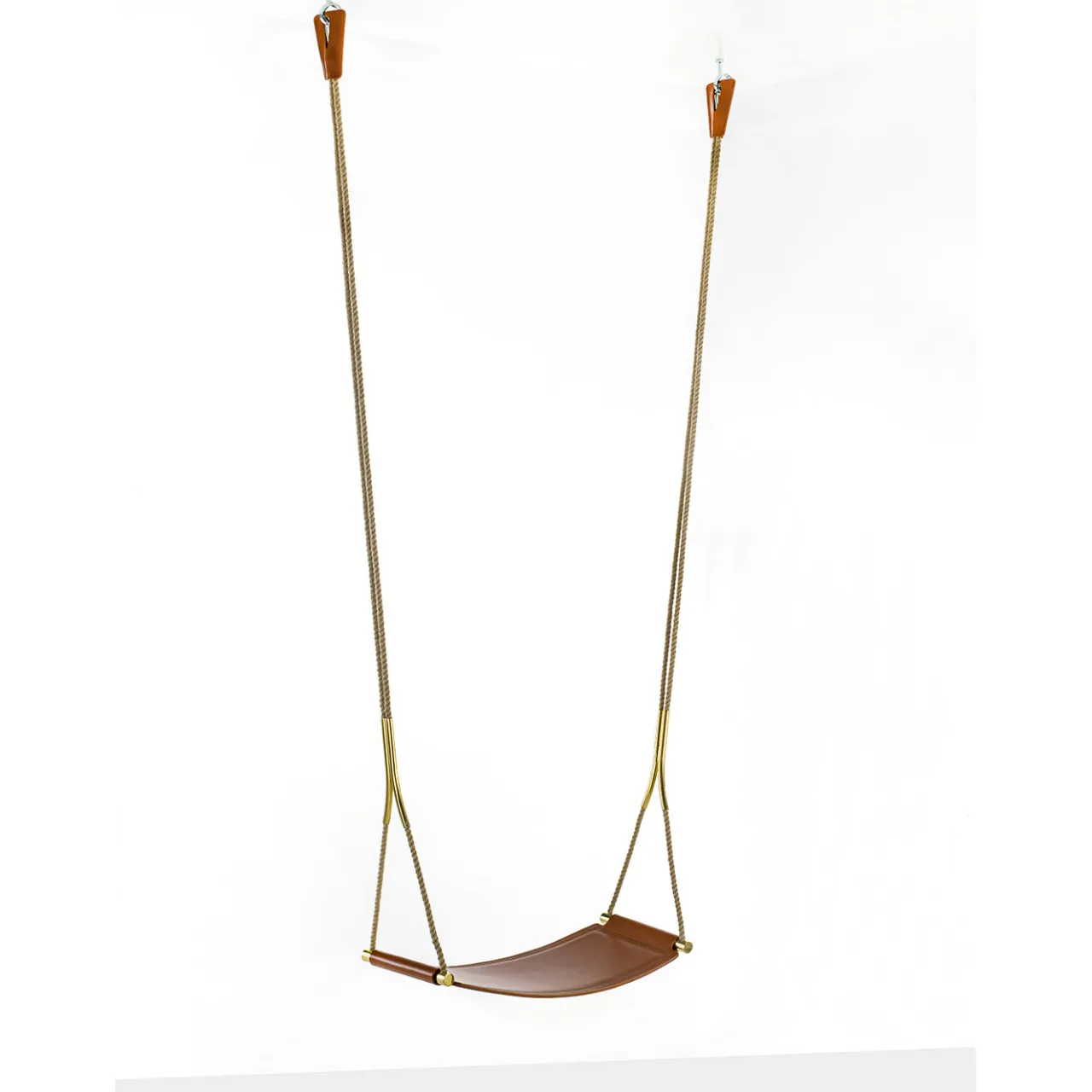 Altalena da interni con seduta in pelle, disponibile in diversi colori. Componenti metallici in ottone bronzato. La corda è abbinata alla finitura dei componenti metallici; ha un’eccellente resistenza alla rottura e un basso allungamento. L’altezza della corda è standard, ma può essere tagliata e regolata per adattarla al vostro spazio. Le cuciture della pelle sono realizzate tono su tono. Tutti i componenti sono disponibili in altri colori. Per maggiori informazioni, contattare il concierge.
