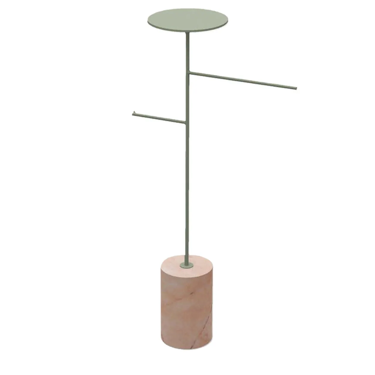Complemento ideale per interni contemporanei e raffinati, questo raffinato appendiabiti e portabiti incarna un fascino moderno nel suo design pulito e dai colori unici. Il tono delicato e aggraziato della base cilindrica in marmo rosa Portogallo contrasta e si armonizza con la laccatura verde salvia della struttura in ferro, caratterizzata da due bracci orizzontali e da un vassoio superiore rotondo. Disponibile anche in una varietà di marmi o lacche diverse, chiedete al Concierge per i dettagli.