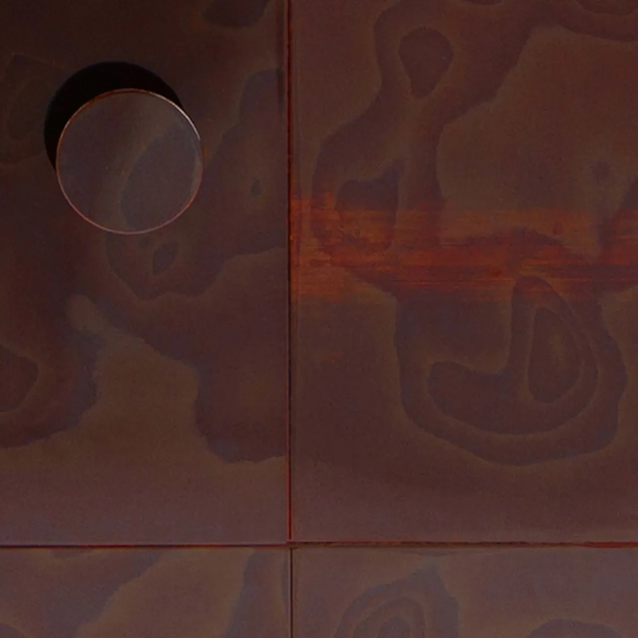 Questo sorprendente appendiabiti fa parte della collezione Sorry Jannis, ispirata a Jannis Kounellis, uno dei più apprezzati interpreti dell’Arte Povera. Grazie a questi suggestivi pannelli, un appendiabiti diventa un quadro. Interamente lavorati a mano, questi pannelli sono realizzati con un materiale sviluppato da Frisoli, il Frisoli Gea, un materiale aerospaziale particolarmente raro che assomiglia al legno. Vanta sfumature viola intenso con striature color rame uniche nel loro genere che rendono ogni pezzo unico e non riproducibile.
