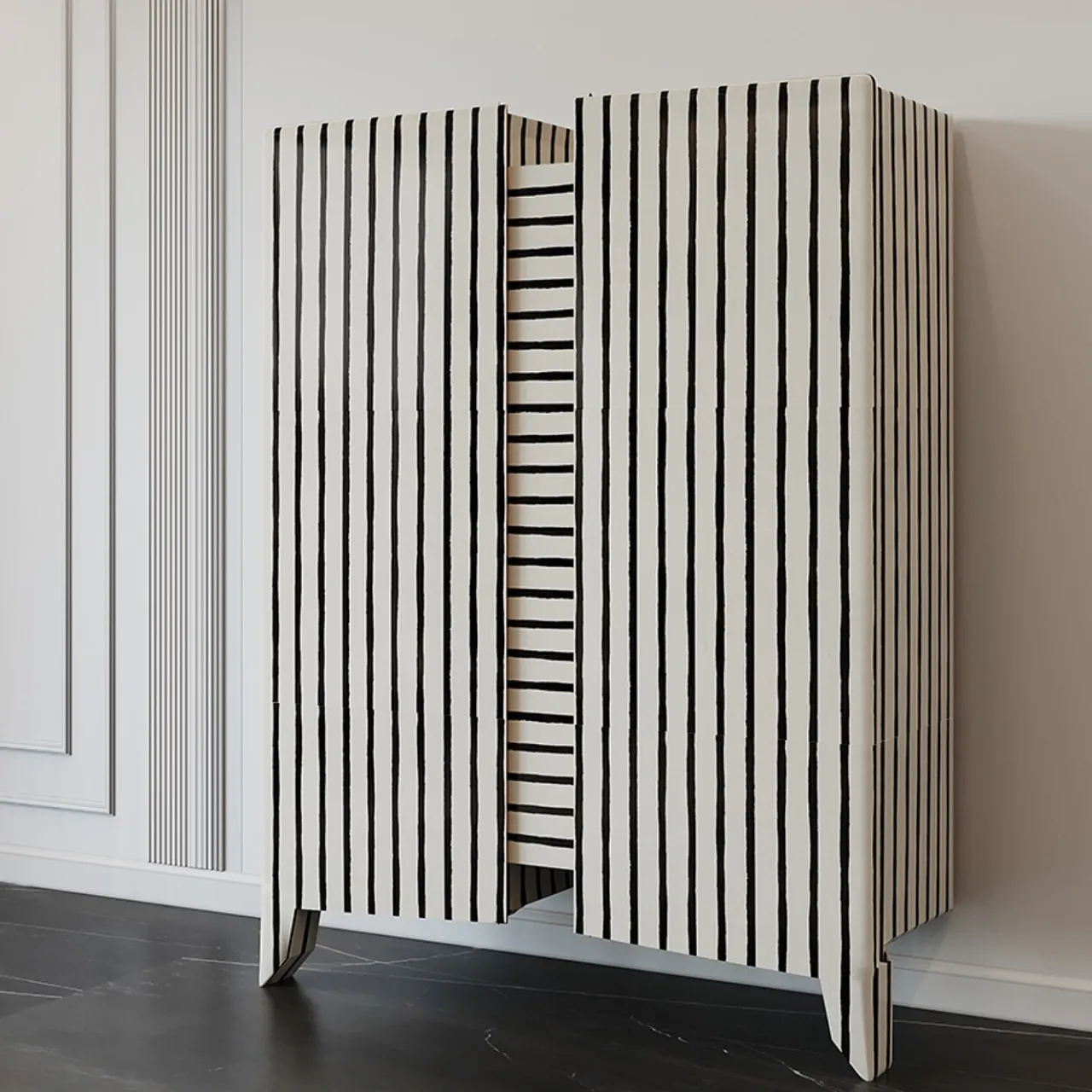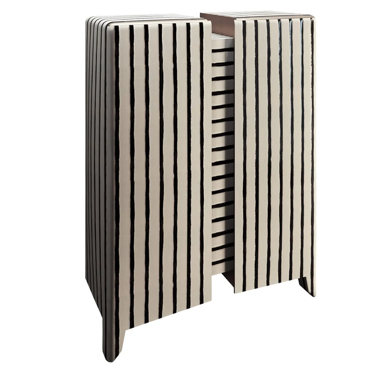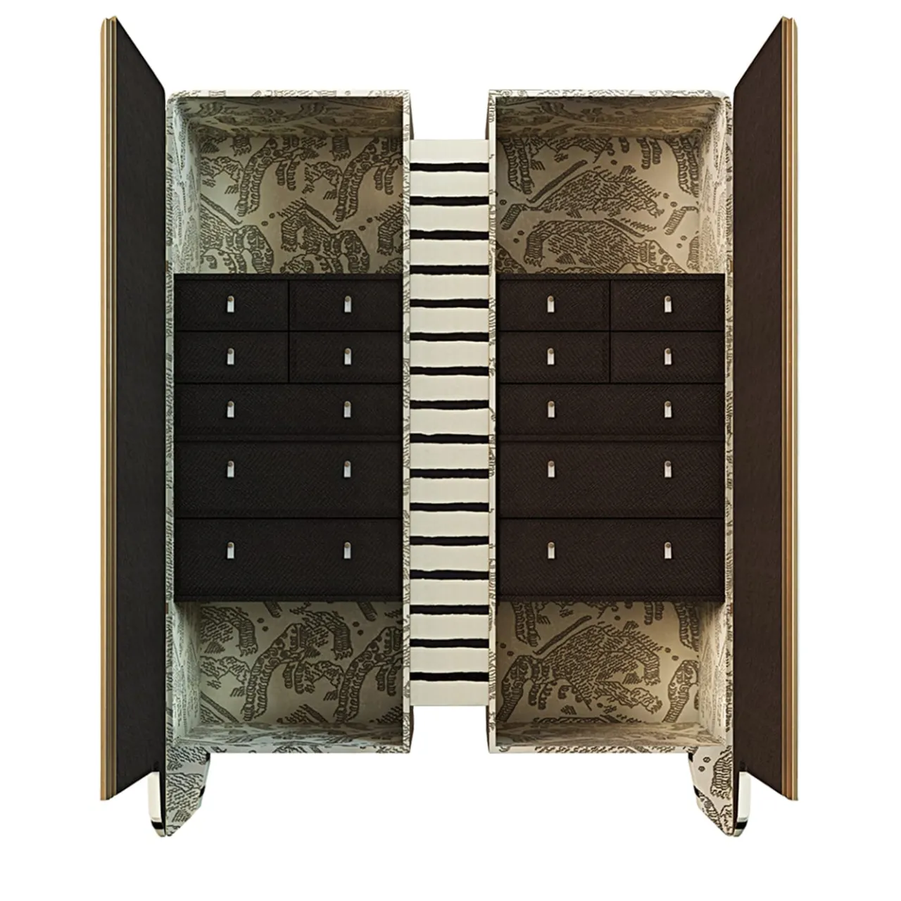 Le grandi dimensioni del mobile lo rendono un complemento versatile e funzionale. Mobile con ante laccate e multimateriale sezionate in 2 parti. Rivestito internamente in tessuto e disponibile con cassetti interni. Ogni anta è arricchita internamente da una luce LED. Questo articolo deve essere fissato a parete. Progettato da Paolo Ciacci.