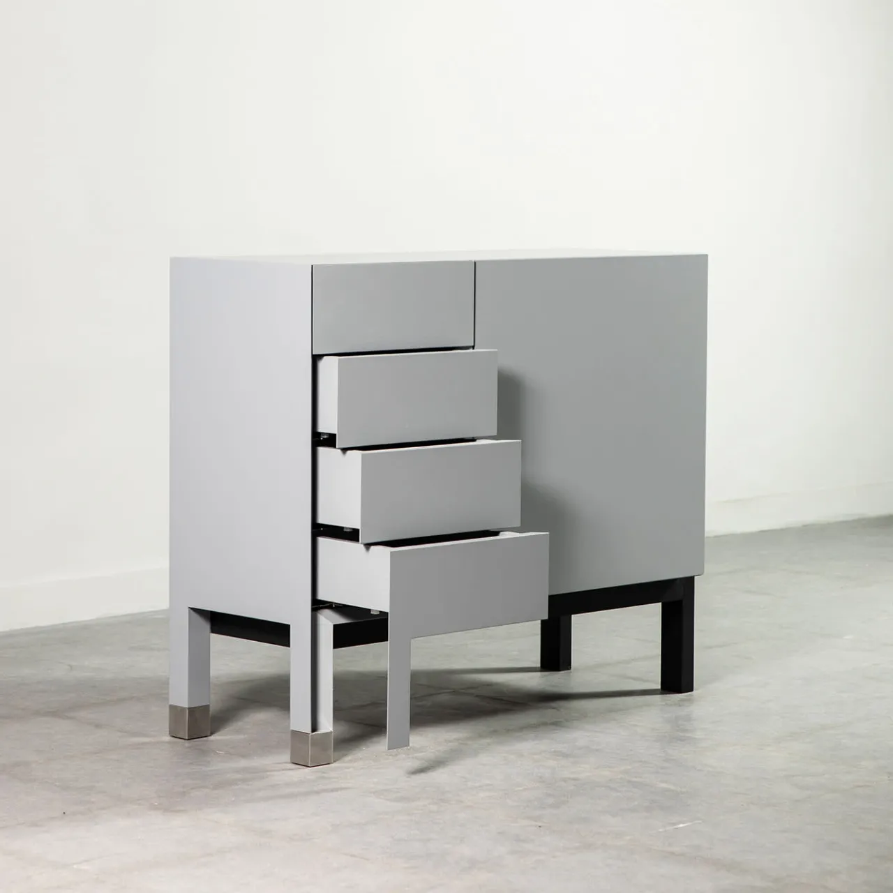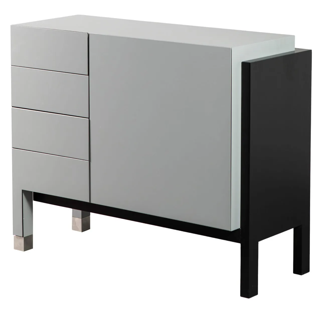 Il mobile in legno laccato opaco grigio e nero è caratterizzato da un design elegante e moderno con un sorprendente contrasto di toni grigi e neri. La finitura opaca liscia aggiunge un tocco sofisticato, mentre la struttura resistente garantisce una qualità duratura. La sua estetica raffinata e la sua versatilità lo rendono un’aggiunta funzionale ed elegante a qualsiasi spazio moderno.