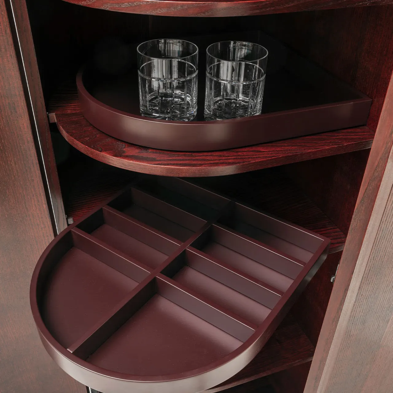 Caratterizzato da fianchi curvi che ne sottolineano l’eleganza distintiva, questo mobile in frassino massimizza la funzionalità e la raffinatezza. Una calda e luminosa finitura gommalacca arricchisce l’intera struttura, che presenta un cassetto esterno e quattro ante a battente che si aprono per rivelare un cassetto interno e dei ripiani. Esplorate l’ampia gamma di opzioni di personalizzazione con il Concierge.