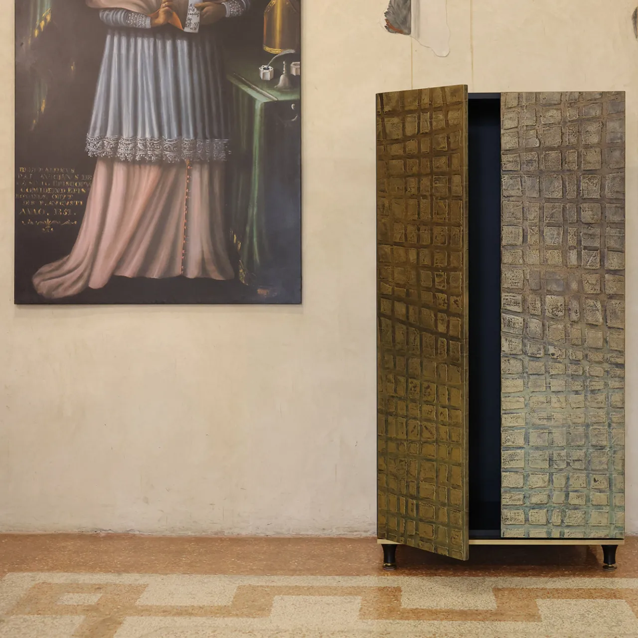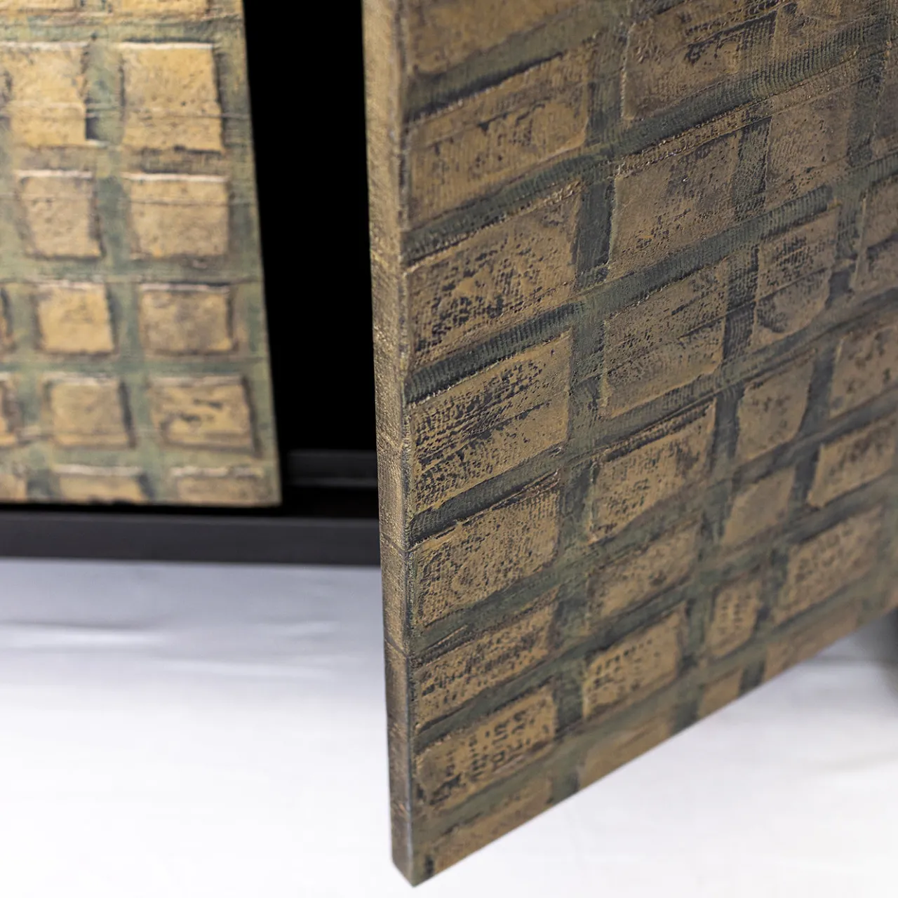 WardRobe si distingue per il suo design unico, caratterizzato da ante con bassorilievi irregolari rivestite in garza bronzata e arricchite da pigmenti metallici. L’intera struttura è rifinita con una superficie nera, che crea un raffinato contrasto di texture e un’elegante lucentezza metallica. Il mobile è sostenuto da una base solida e minimalista, perfettamente armonizzata con i pannelli frontali lavorati. Le dimensioni personalizzabili ne permettono l’inserimento in diversi ambienti, rendendolo un elemento d’arredo estremamente versatile. Per ulteriori informazioni consultare il Concierge.