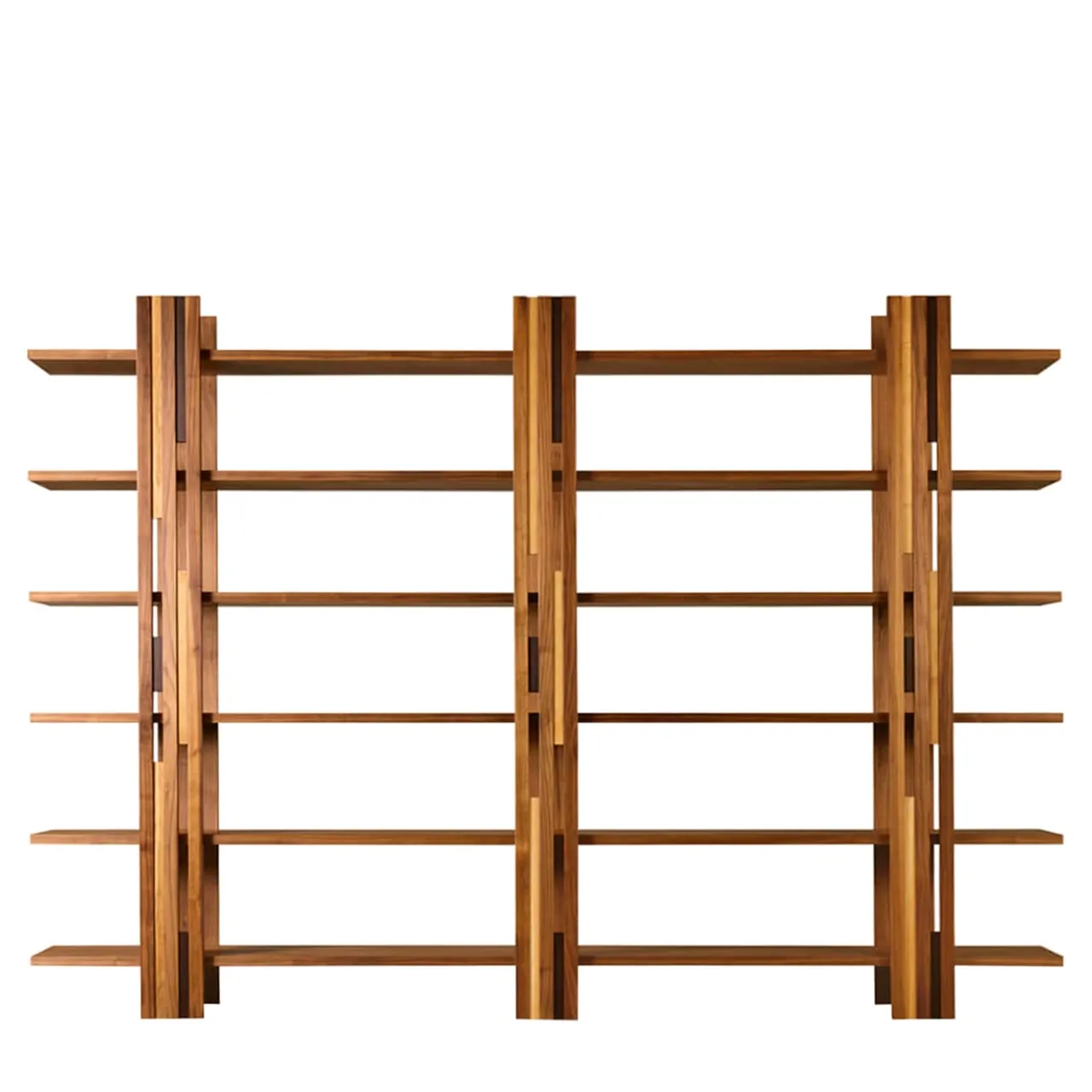 La libreria in legno massiccio Gravità è una composizione semplice e lineare che trasmette una sensazione di sospensione. Utilizza elementi verticali magnetici per nascondere le giunzioni dei piani di appoggio.