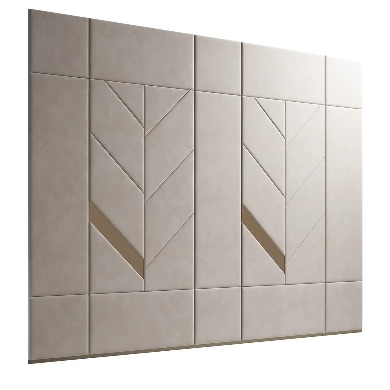 Boiserie in Tecnonabuk con inserti in specchio bronzato. Dimensioni al metro lineare: H 250 cm.