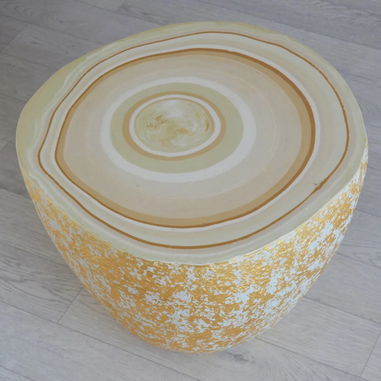 Ipnotizzante nei suoi motivi e texture contrastanti, questo tavolino è una superba sintesi di eccentricità e minimalismo. Un luminoso effetto oro sfumato accentua i lati grezzi, mentre il piano liscio sfoggia un motivo di anelli irregolari concentrici che ricordano la sezione di un tronco d’albero. Un design elegante che sicuramente non passerà di moda, ogni pezzo è abilmente realizzato a mano ed è davvero unico.