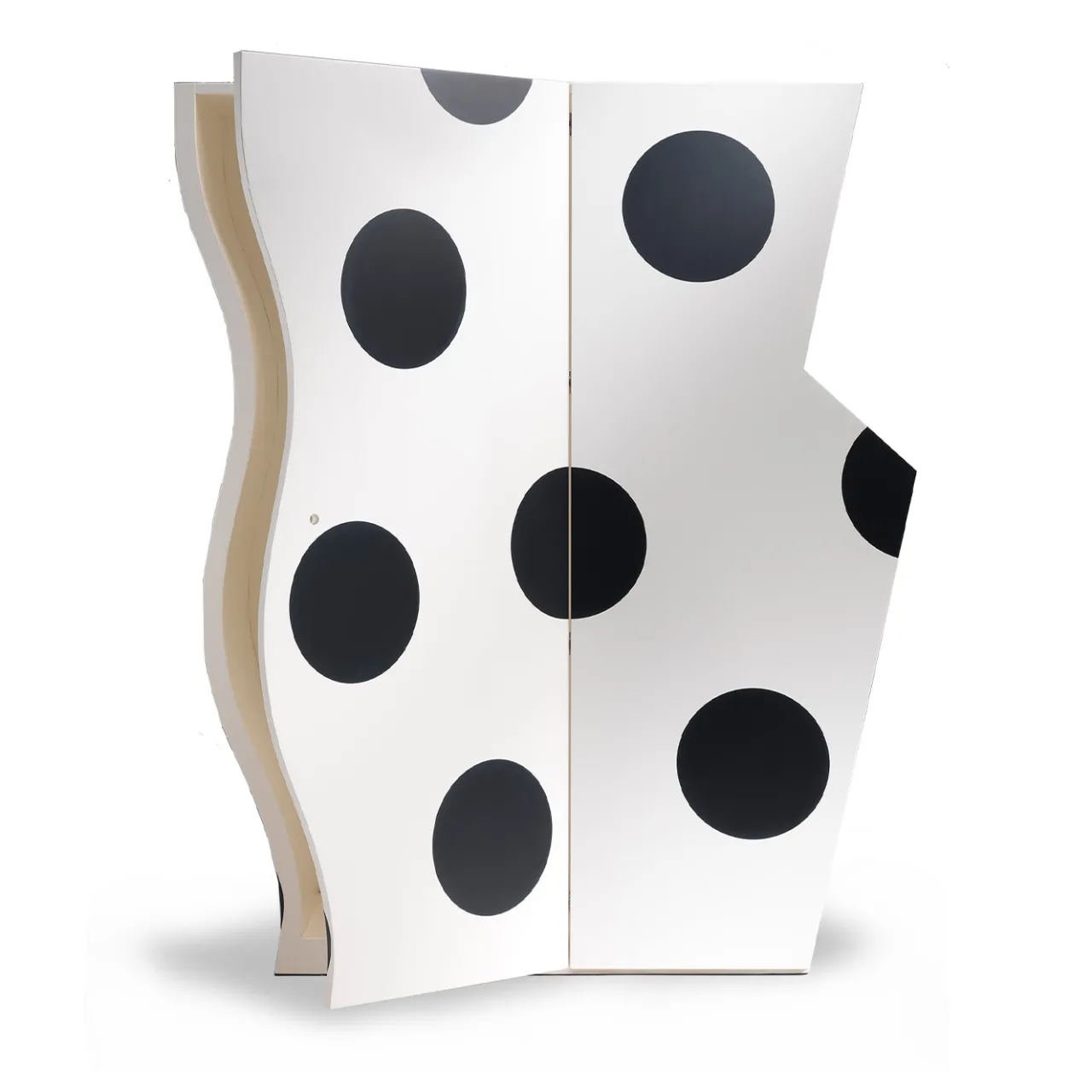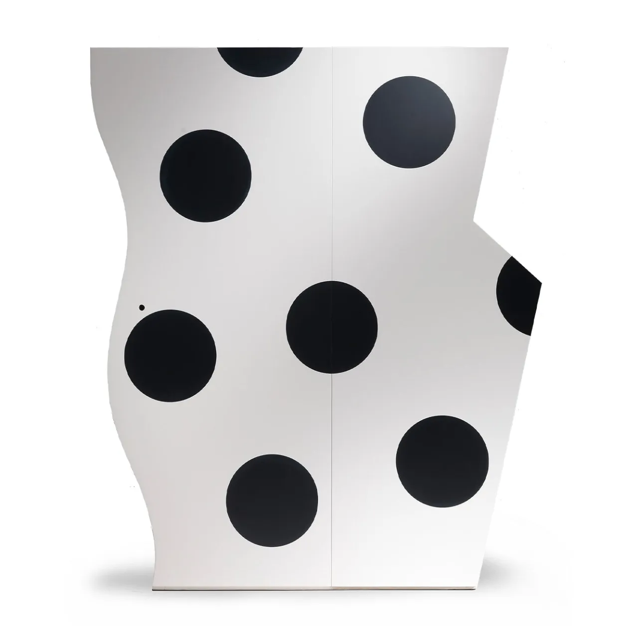 Questa meraviglia a sei porte è un viaggio attraverso i contrasti, che coniuga senza soluzione di continuità il non convenzionale con un senso di rigore ed equilibrio. Truman vanta una finitura laccata bianca ornata da stravaganti pois, che aggiungono un tocco di giocosità al suo fascino sofisticato. Questo mobile è un’espressione artistica che sfida le norme del design, invitandovi a esplorare uno spazio in cui tradizione e innovazione convivono armoniosamente.