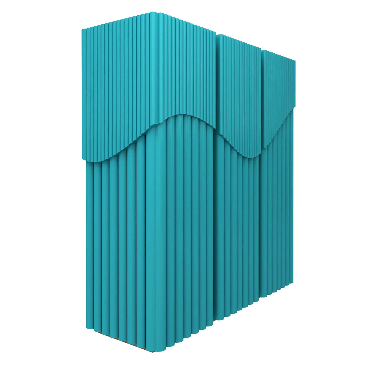 Con una silhouette raffinata e scultorea, questo mobile è un’affascinante aggiunta a un arredamento moderno. Composto da linee delicate e armoniose, è realizzato in legno laccato turchese arricchito da dettagli in ottone dorato. La sua superficie plissettata, che ricorda le tuniche dell’antica Grecia, nasconde un interno prezioso, caratterizzato da due cassetti e da ripiani in vetro trasparente, impreziositi da un luminoso specchio di fondo.