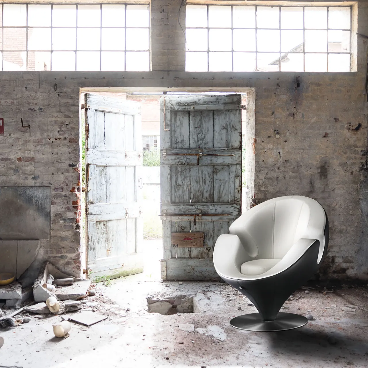 Ispirata alle calle nel taglio obliquo e nella forma avvolgente, questa poltrona offre la praticità di una base girevole allo stile di un design fresco. La struttura compatta e avvolgente – realizzata in compensato e imbottita in poliuretano espanso a celle aperte con rivestimento in dacron – ricorda un bocciolo bianco che si estende da una base girevole in acciaio satinato. Ideale per arredamenti residenziali o commerciali.