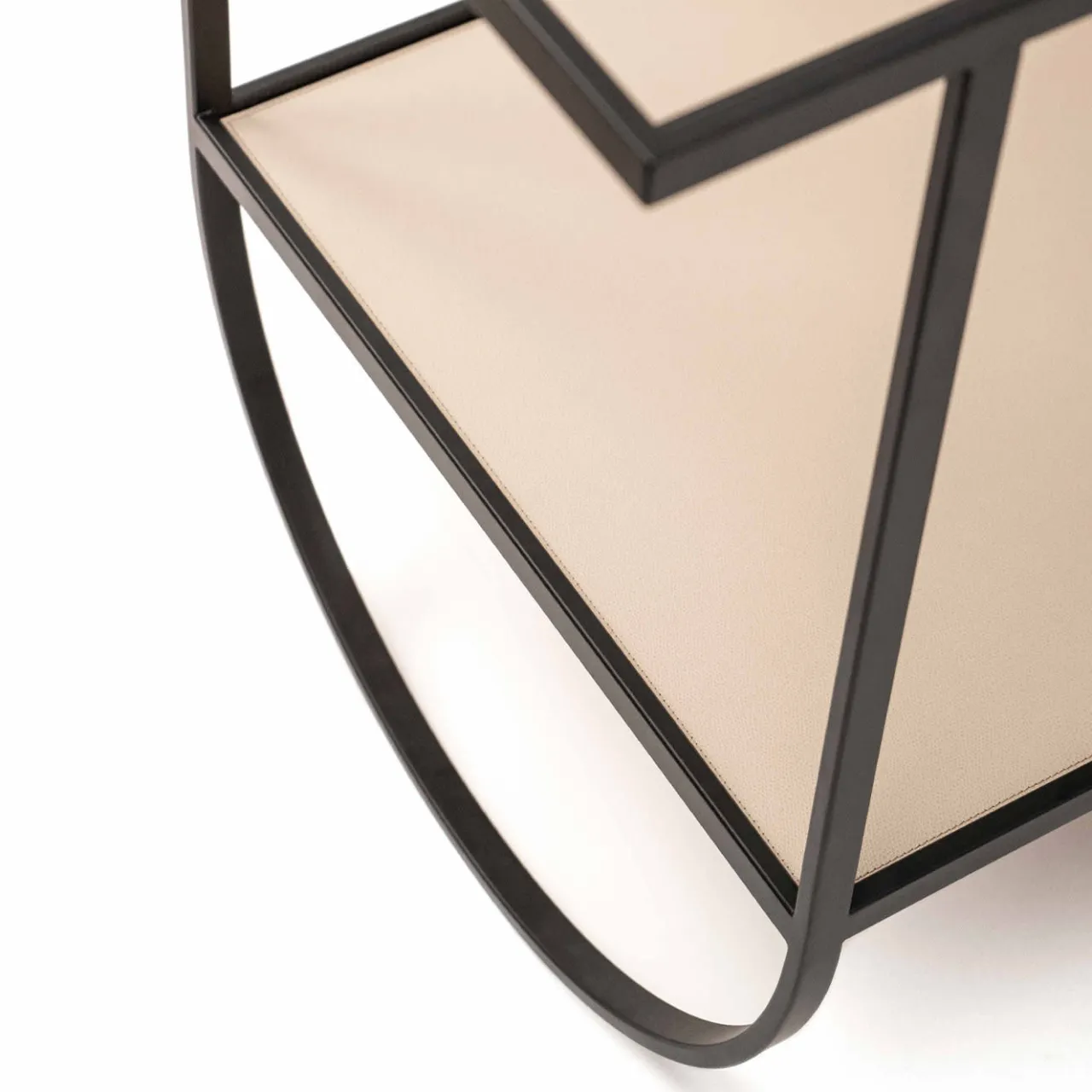 Un pezzo di vero e inconfondibile design italiano. La sintesi perfetta tra estetica e praticità. Linee armoniose che uniscono il robusto profilo in metallo brunito al legno di noce, ai pavimenti in pelle e alle tre cassette estraibili. Questo carrello bar di tendenza è dotato di due grandi ruote che rifiniscono splendidamente il prodotto consentendone il movimento. Semplicemente unico.