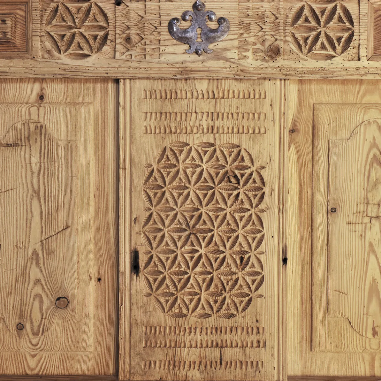 Un’aggiunta straordinaria a un arredamento moderno o rustico, questa cassapanca da bar è un prezioso esempio di stile gotico nato nella regione francese dell’Elsass, al confine con la Germania. Realizzato a mano utilizzando larice di 400-600 anni fa, questo pezzo vanta sorprendenti decorazioni tradizionali sui lati e sulla parte anteriore, intagliate a mano con motivi simmetrici in bassorilievo. Un piccolo pulsante sui lati attiva un sistema idraulico che permette al pezzo di aprirsi facilmente (su richiesta è disponibile anche con telecomando). Questa cassapanca è disponibile anche in una dimensione più grande.