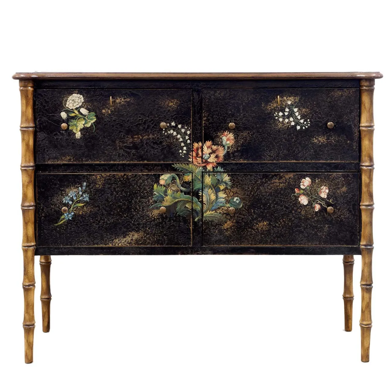 L’elegante stile veneziano caratterizza il Comò Lombardia, realizzato su misura e decorato interamente a mano. La struttura in legno, qui presentata in nero con decorazioni in tonalità tenui, può essere personalizzata sia nelle dimensioni che nei colori, in base alle richieste del cliente Questo comodino può essere abbinato a qualsiasi stile di arredamento, in quanto il prodotto può essere interamente personalizzato.
