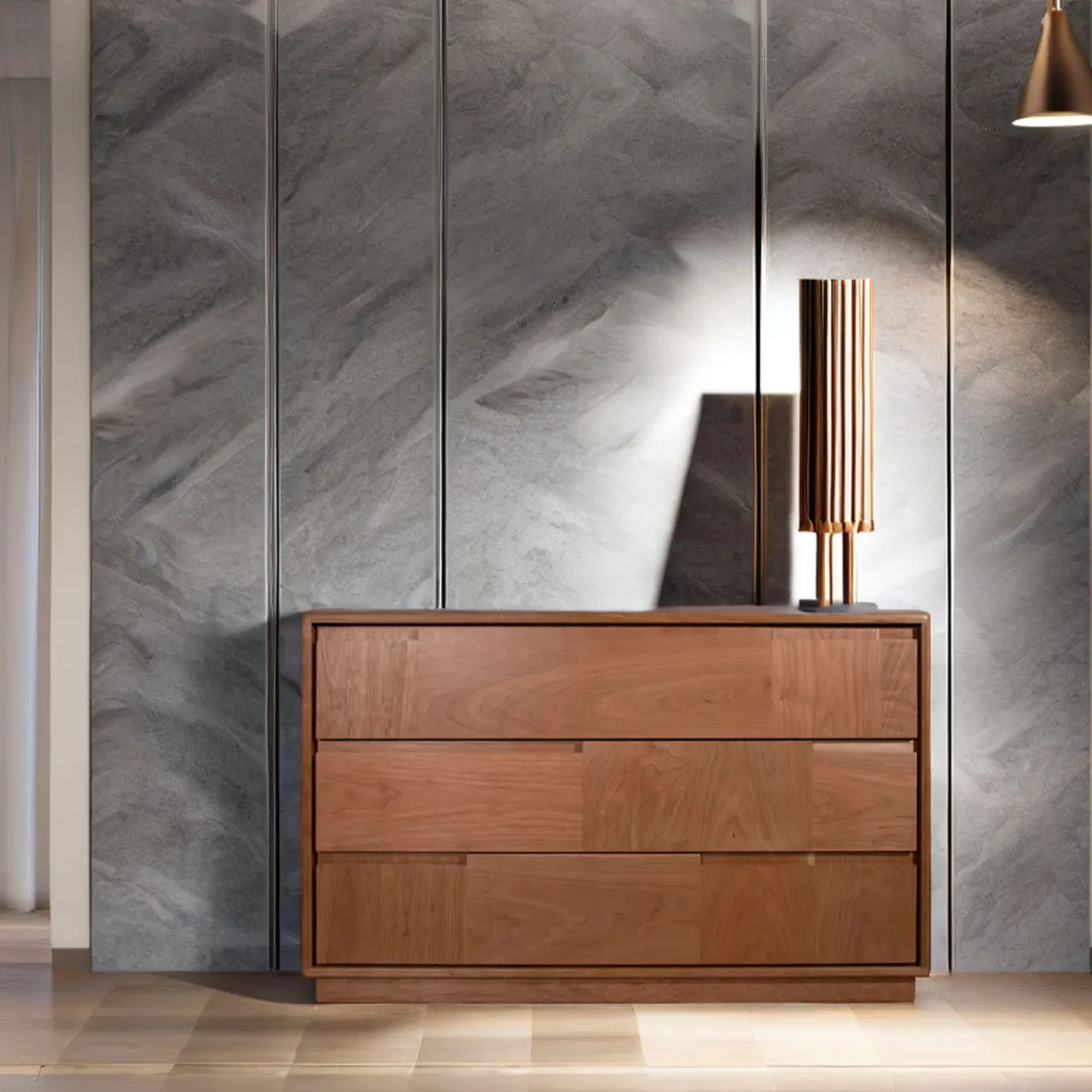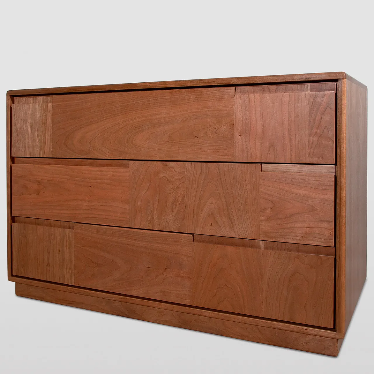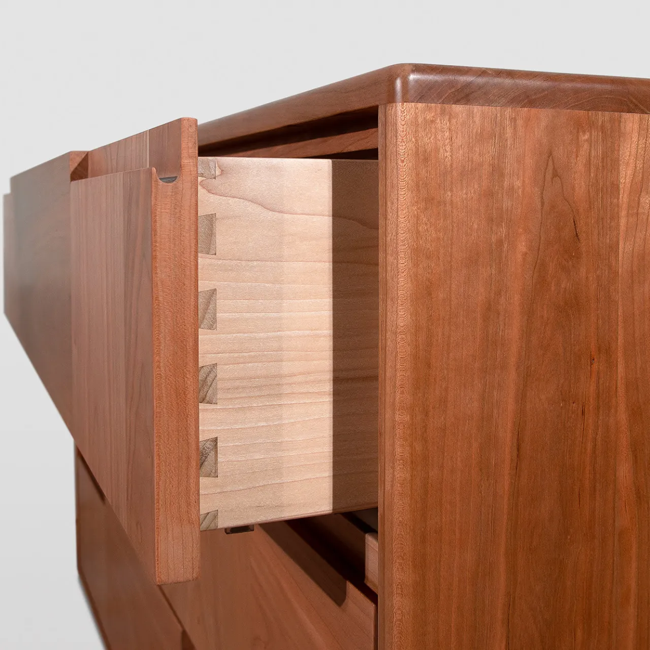 Dalle linee pure e semplici, la cassettiera Nordic rappresenta il meglio dell’arredamento moderno italiano. Realizzato a mano in ciliegio massiccio, è dotato di tre cassetti con sistema di chiusura rallentata Blumotion, i cui pannelli frontali mostrano le squisite venature del legno in un’alternanza di pannelli verticali e orizzontali, conferendo un suggestivo effetto geometrico. Bordi smussati, incastri a coda di rondine e maniglie a scomparsa strategicamente posizionate completano questo pezzo minimalista. Rifinito con vernici ecologiche a base d’acqua e lucidatura finale a mano con cera d’api.