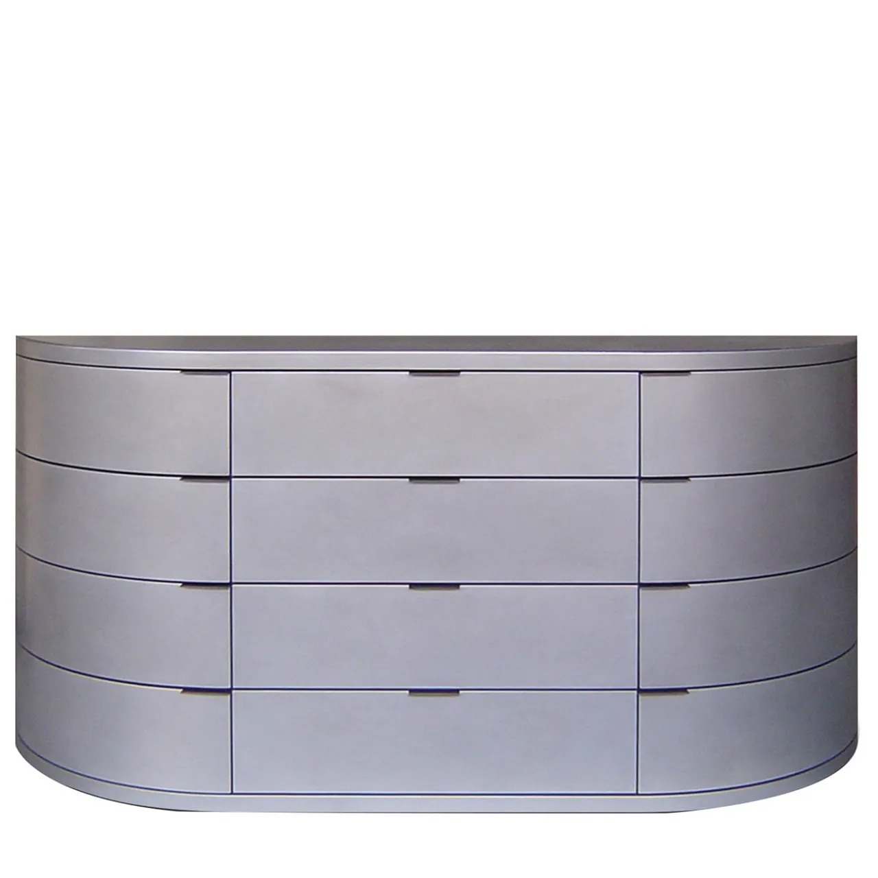 Questa cassettiera ha un elemento centrale dritto e lati arrotondati con maniglie in metallo. I cassetti esterni sono facilmente accessibili grazie a uno speciale sistema di rotazione. Tutte le versioni hanno la pelle stampata in bronzo lucido all’interno dei cassetti. Per ulteriori informazioni, contattare il Concierge.