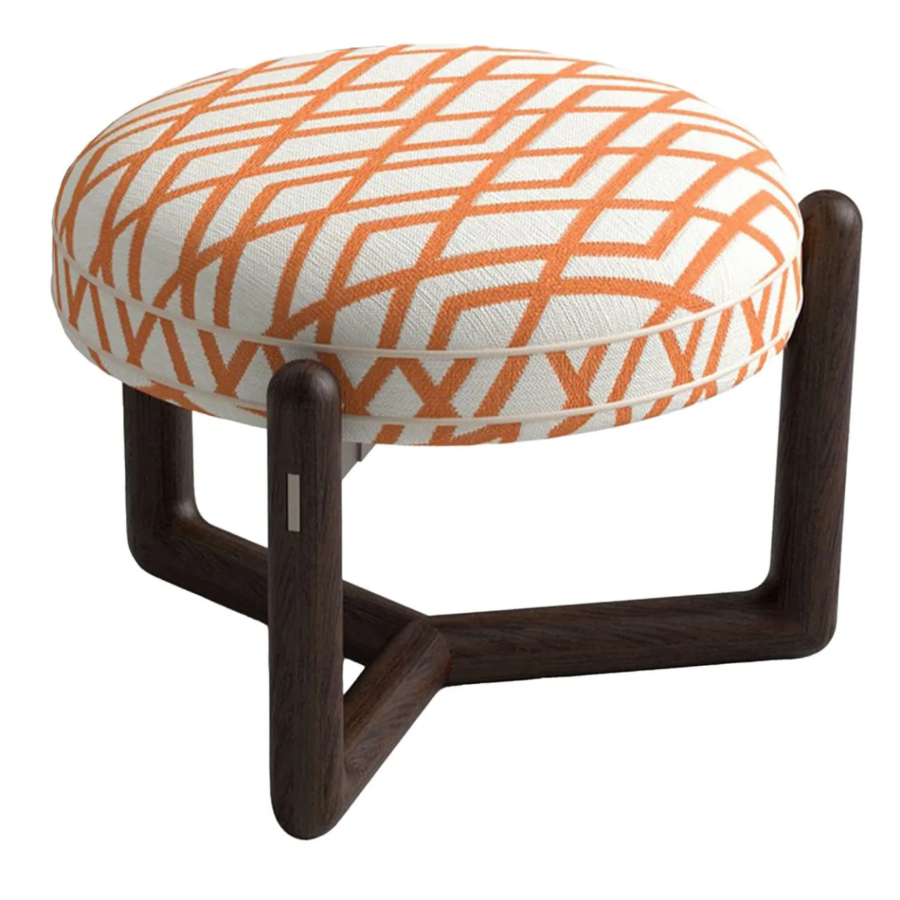 Aggiungete un tocco di raffinatezza con l’elegante pouf. Presenta una struttura in iroko verniciato completata da eleganti dettagli in metallo satinato. Rivestito in tessuto, offre comfort e stile. Il pouf è rifinito con raffinati profili in pelle che ne esaltano il fascino moderno. Perfetto per gli interni contemporanei, il pouf combina materiali e design di alta qualità.