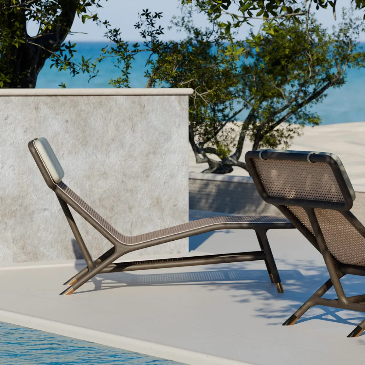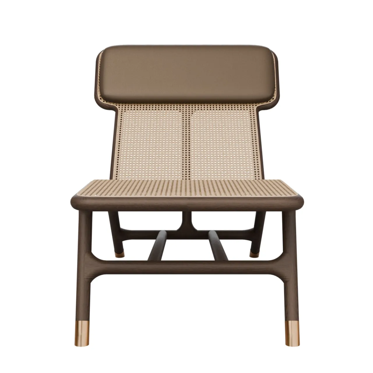 Una rivisitazione moderna di un classico senza tempo, questa raffinata chaise longue vanta un’elegante struttura in legno di frassino marrone con piedini dettagliati in ottone e un’iconica seduta in paglia di Vienna. Il poggiatesta è arricchito da un cuscino imbottito e rivestito in marrone, comodamente fissato allo schienale. Adatto a eleganti solarium o patii. La solidità della struttura è garantita da due supporti in legno di frassino tornito e non più da un solo supporto, che però mantiene la struttura leggera e ariosa. Disponibile anche in versione Outdoor. Contattare il Concierge per ulteriori informazioni.