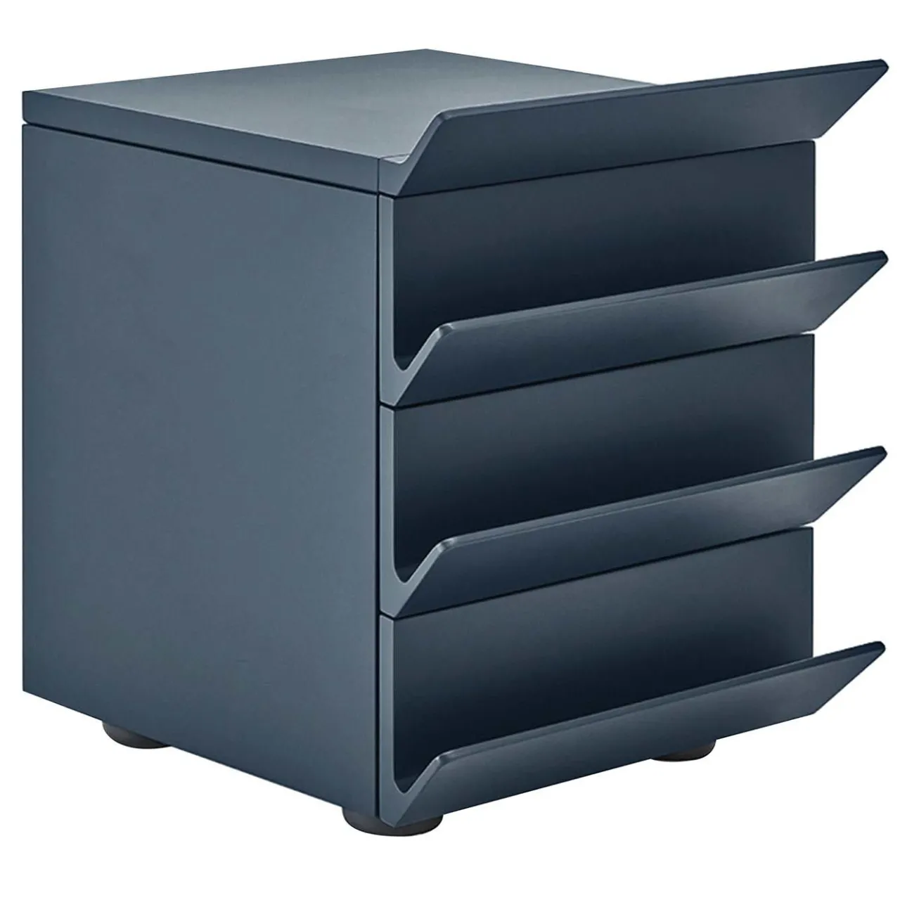 Parte della collezione Overlooking disegnata da Lorenzo Damiani, questa cassettiera a tre cassetti sarà una splendida aggiunta a una camera da letto moderna come comodino alto, o come spazio di archiviazione aggiuntivo se abbinata alla cassettiera Overlooking a 2 cassetti accanto al letto. L’ampio spazio interno è una casa, mentre le maniglie dalla forma unica sono balconi su cui è possibile aggiungere temporaneamente oggetti di uso quotidiano. Il mobile è realizzato in massello di noce canaletto con laccatura opaca.