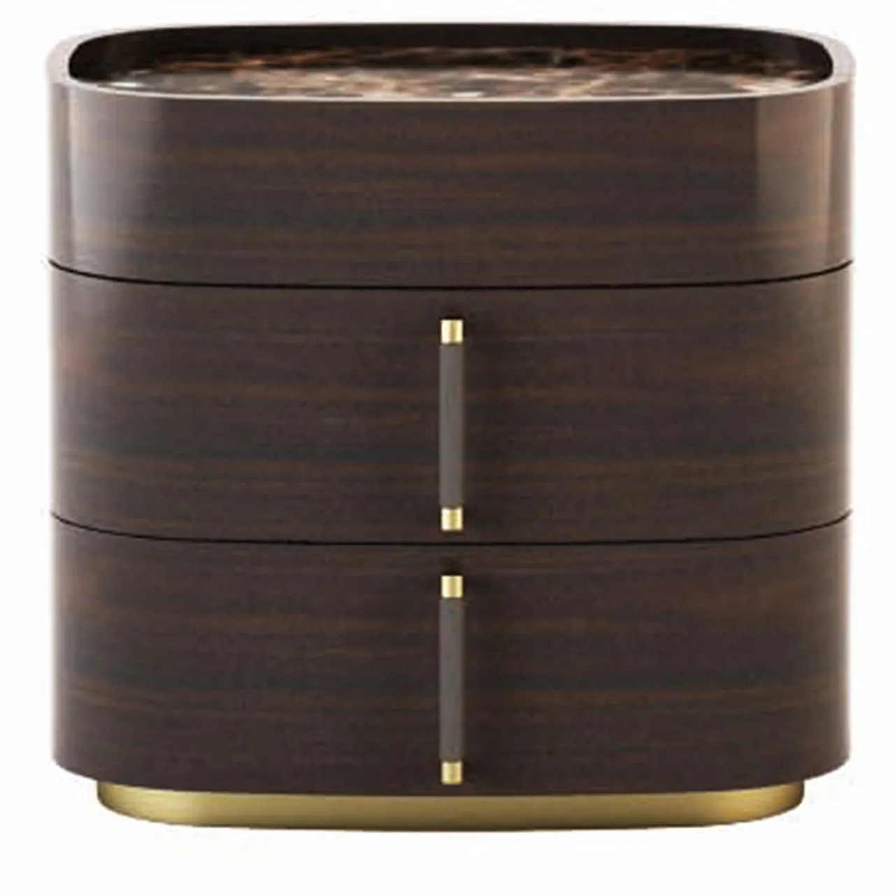 Realizzato in compensato curvato con impiallacciatura in noce scuro lucido spazzolato, il tavolino a 3 cassetti Mayfair conferisce un’eleganza chic alla vostra camera da letto in stile contemporaneo. Il tavolino è dotato di cassetti foderati su guide metalliche morbide, base e maniglie in ottone con finitura in ottone brunito e piano in marmo o pelle. Qui raffigurato con il piano in pelle scura di Clayton (CAT A).