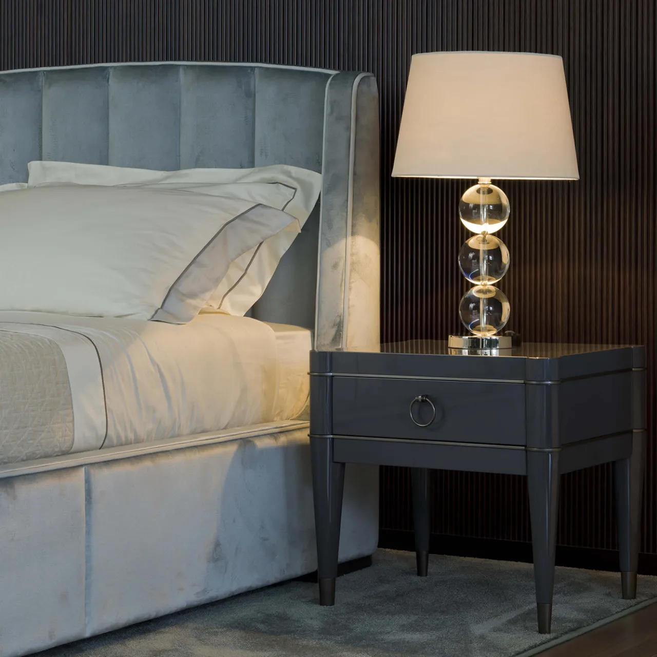 Questo comodino è un’affascinante aggiunta alla struttura del letto e rappresenta una presenza squisita in una casa classica, grazie alla sua sapiente lavorazione, ai materiali di alta qualità e ai dettagli sorprendenti. La struttura in legno massiccio di questo pezzo è ornata ai piedi, lungo il perimetro e nella maniglia del cassetto anteriore con metallo con finitura bronzo. Il top e il frontale hanno una finitura laccata, mentre il cassetto, dotato di guide Bluemotion, ha il retro rivestito in ecopelle. Gli inserti metallici sono disponibili anche in ottone satinato.