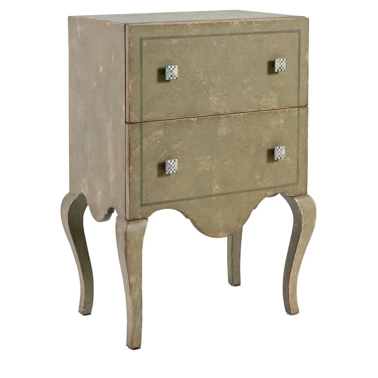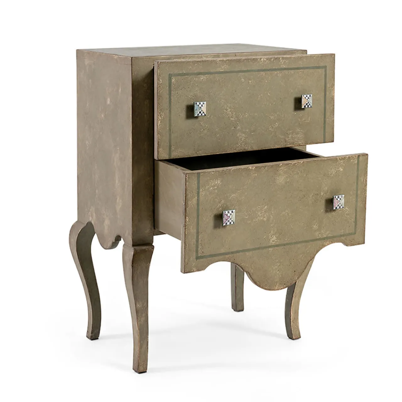 Il comodino Brenta, della collezione Ode to Venice, è ispirato agli intricati pavimenti in marmo della Basilica di San Marco e sfoggia un’accattivante tonalità grigio-verde che ricorda l’arte dell’architettura veneziana. Il comodino, realizzato in legno di faggio, presenta due spaziosi cassetti ornati da tiretti dipinti, che riflettono la ricca tradizione dell’artigianato veneziano. L’interno è caratterizzato da una tonalità verde scuro che ne esalta l’eleganza. Il piano in marmo dipinto, dal design artistico, aggiunge un tocco finale squisito. Sono disponibili opzioni di personalizzazione che consentono di realizzare richieste personalizzate in termini di colore e arredamento. Per ulteriori informazioni, contattare il Concierge.