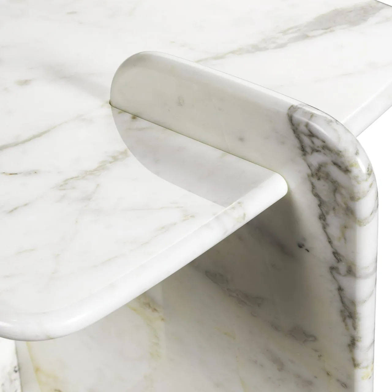 Il comodino Cards è caratterizzato da un design scultoreo ispirato a un castello di carte, che unisce funzionalità e forma espressiva. La sua struttura presenta bordi arrotondati e piani intersecanti che creano interesse visivo da ogni angolazione. La giustapposizione di superfici in marmo liscio esalta l’interazione dinamica degli elementi. Ideale come comodino o tavolino, funge da raffinato accento architettonico negli spazi abitativi contemporanei.