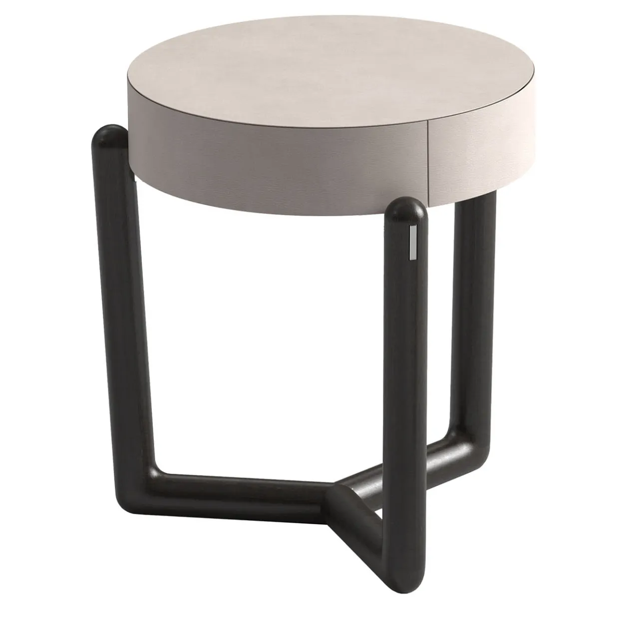 Arricchite l’ambiente con il comodino, caratterizzato da un cassetto laccato lucido (RAL 1015) per un tocco di raffinatezza. La struttura in legno nero offre un look elegante e moderno, completato da dettagli in metallo spazzolato per una finitura raffinata. Ideale per gli interni contemporanei, questo comodino combina un design elegante con la funzionalità, rendendolo un’aggiunta di stile a qualsiasi letto.