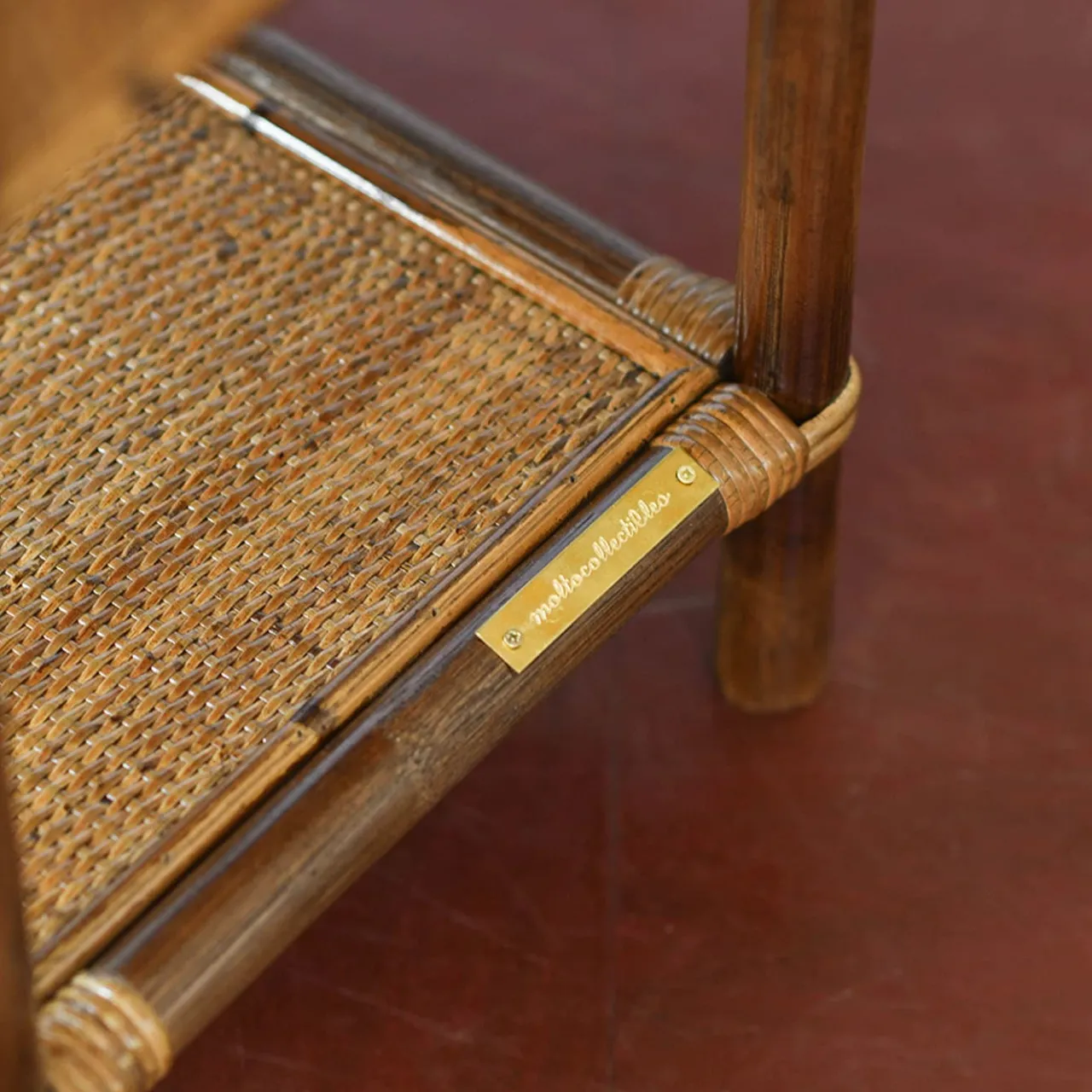 Prezioso gioiello di ebanisteria realizzato a mano con vimini e bambù sapientemente fissati con legature in pelle, questo comodino è un’aggiunta esclusiva agli interni rustico-chic. La finitura nocciola anticato conferisce un accento vintage alla struttura, dotata di un ripiano in vimini e di un cassetto per ottimizzare le esigenze di stoccaggio. Il comodino appartiene a una serie limitata.